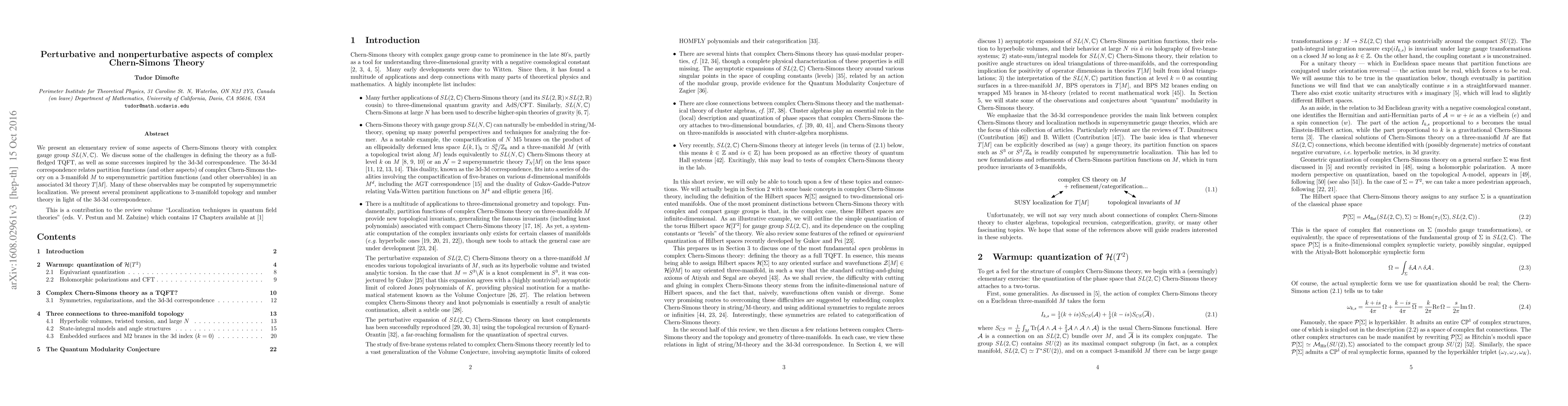 We present an elementary review of some aspects of Chern-Simons theory with complex gauge group SL(N,C). We discuss some of the challenges in defining the theory as a full-fledged TQFT, as well as some successes inspired by the 3d-3d correspondence. The 3d-3d correspondence relates partition functions (and other aspects) of complex Chern-Simons theory on a 3-manifold M to supersymmetric partition functions (and other observables) in an associated 3d theory T[M]. Many of these observables may be computed by supersymmetric localization. We present several prominent applications to 3-manifold topology and number theory in light of the 3d-3d correspondence.