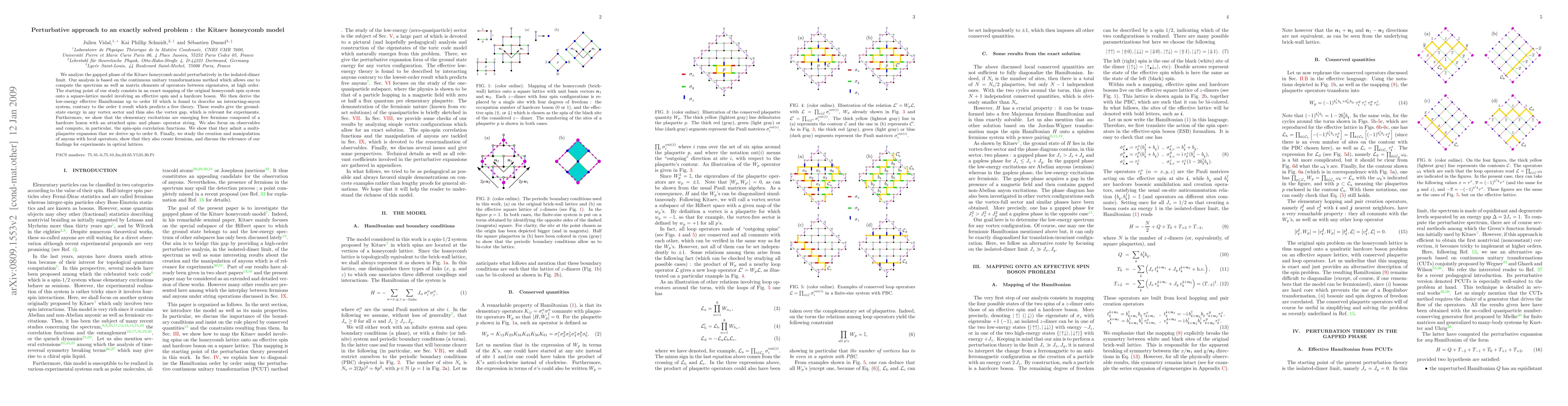 We analyze the gapped phase of the Kitaev honeycomb model perturbatively in the isolated-dimer limit. Our analysis is based on the continuous unitary transformations method which allows one to compute the spectrum as well as matrix elements of operators between eigenstates, at high order. The starting point of our study consists in an exact mapping of the original honeycomb spin system onto a square-lattice model involving an effective spin and a hardcore boson. We then derive the low-energy effective Hamiltonian up to order 10 which is found to describe an interacting-anyon system, contrary to the order 4 result which predicts a free theory. These results give the ground-state energy in any vortex sector and thus also the vortex gap, which is relevant for experiments. Furthermore, we show that the elementary excitations are emerging free fermions composed of a hardcore boson with an attached spin- and phase- operator string. We also focus on observables and compute, in particular, the spin-spin correlation functions. We show that they admit a multi-plaquette expansion that we derive up to order 6. Finally, we study the creation and manipulation of anyons with local operators, show that they also create fermions, and discuss the relevance of our findings for experiments in optical lattices.