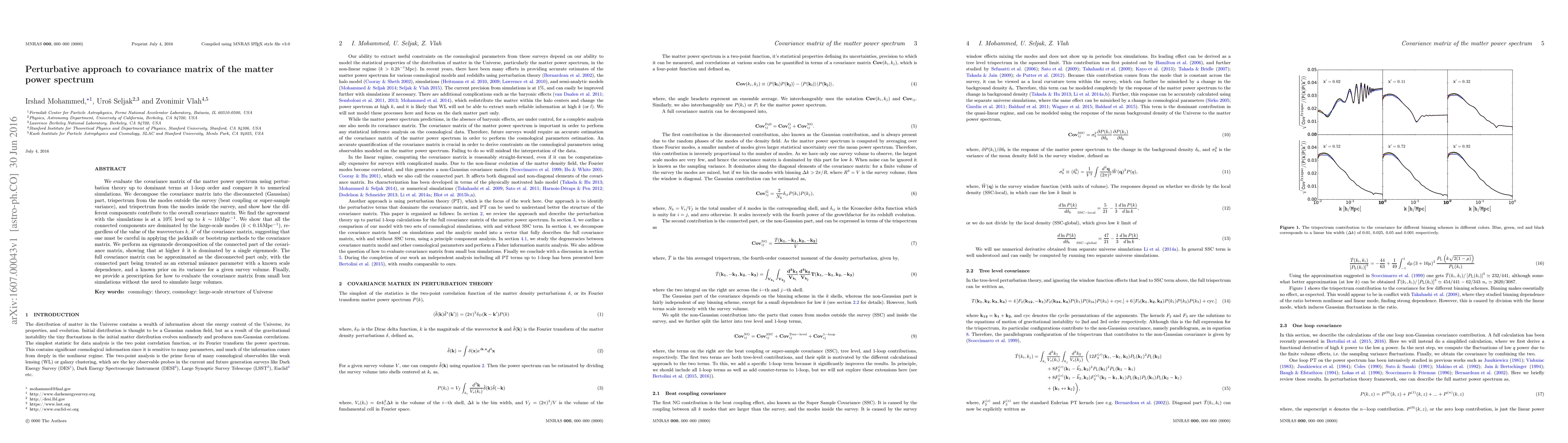 This paper evaluates the covariance matrix of the matter power spectrum using perturbation theory up to 1-loop order, comparing results to numerical simulations and showing agreement at a 10% level. It highlights the contributions of different components, including trispectrum effects, and suggests careful application of statistical methods due to dominance by large-scale modes.