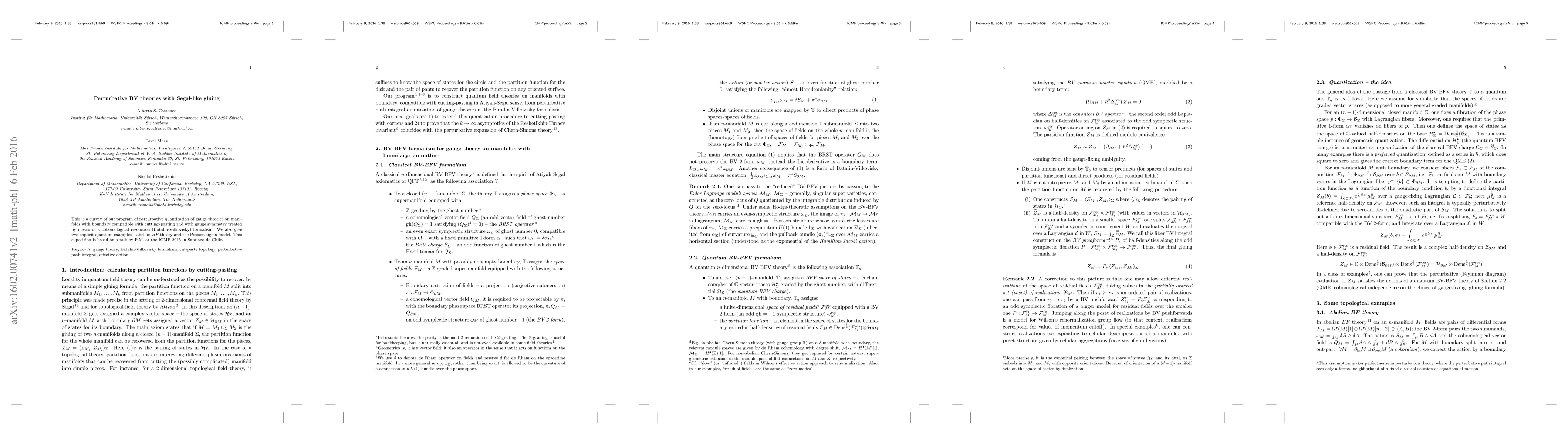 This is a survey of our program of perturbative quantization of gauge theories on manifolds with boundary compatible with cutting/pasting and with gauge symmetry treated by means of a cohomological resolution (Batalin-Vilkovisky) formalism. We also give two explicit quantum examples -- abelian BF theory and the Poisson sigma model. This exposition is based on a talk by P.M. at the ICMP 2015 in Santiago de Chile.