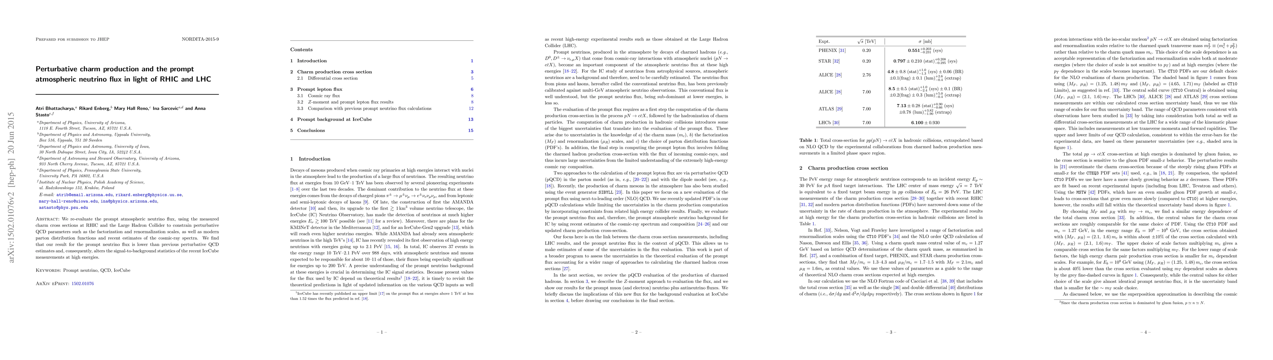 This paper re-evaluates the prompt atmospheric neutrino flux using charm cross sections from RHIC and LHC to refine perturbative QCD parameters. The new estimates show a lower prompt neutrino flux than previous perturbative QCD models, impacting the signal-to-background ratio in IceCube's high-energy measurements.