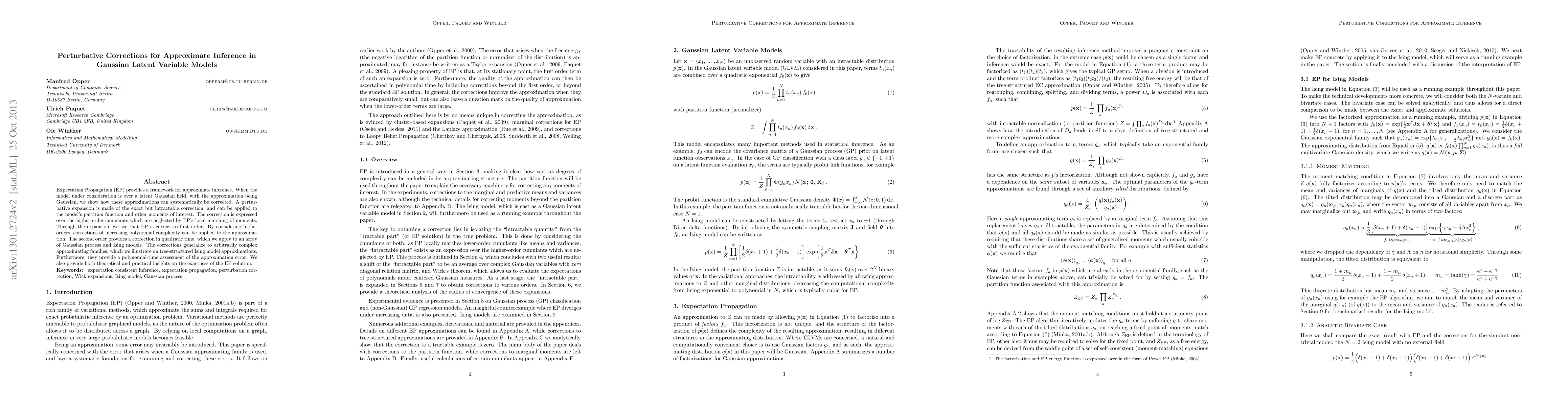 This paper develops a perturbative expansion to correct Expectation Propagation (EP) approximations in Gaussian latent variable models, showing that EP is correct to first order. The second-order correction provides a quadratic time improvement, applicable to Gaussian processes and Ising models, and offers a polynomial-time assessment of approximation error.