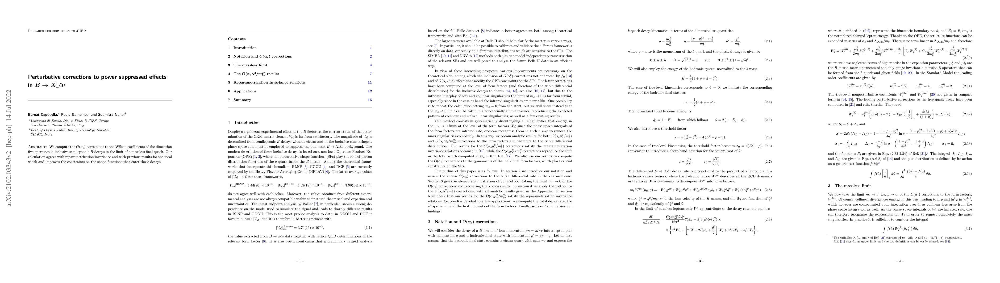 We compute the $O(\alpha_s)$ corrections to the Wilson coefficients of the dimension five operators in inclusive semileptonic $B$ decays in the limit of a massless final quark. Our calculation agrees with reparameterization invariance and with previous results for the total width and places constraints on the shape functions that enter those decays.
