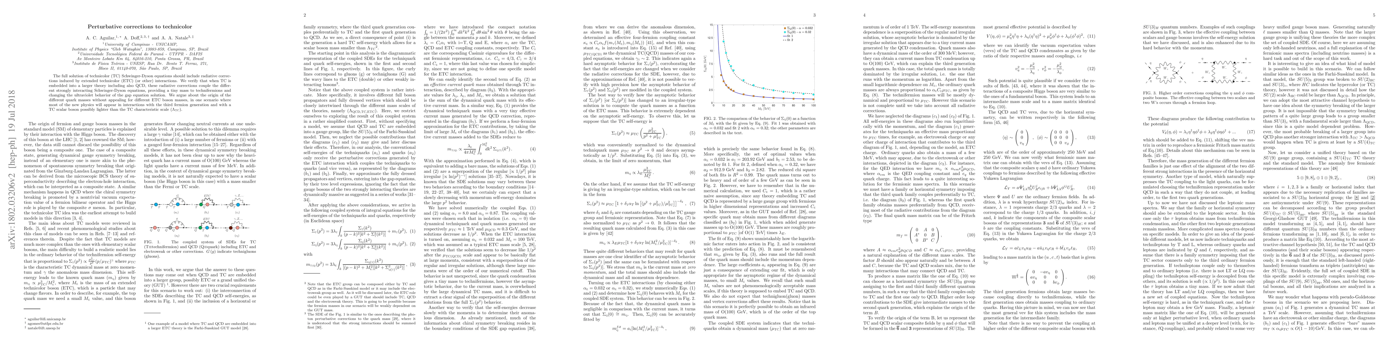 The full solution of technicolor (TC) Schwinger-Dyson equations should include radiative corrections induced by extended technicolor (ETC) (or other) interactions. We verify that when TC is embedded into a larger theory including also QCD, these radiative corrections couple the different strongly interacting Schwinger-Dyson equations, providing a tiny mass to technifermions and changing the ultraviolet behavior of the gap equation solution. We argue about the origin of the different quark masses without appealing for different ETC boson masses, in one scenario where most of the new physics will appear in interactions with the third fermion generation and with a TC scalar boson possibly lighter than the TC characteristic scale ($\Lambda_{\tt{TC}}$)