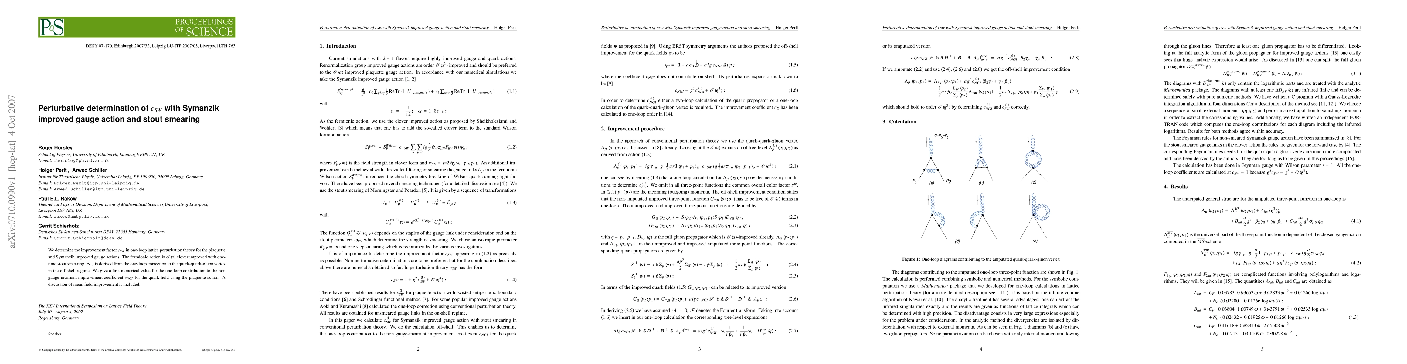 This paper determines the improvement factor $c_{SW}$ in one-loop perturbation theory for Symanzik improved gauge actions with stout smearing, deriving it from the one-loop correction to the quark-quark-gluon vertex. It also provides the first numerical value for the one-loop contribution to the non-gauge-invariant improvement coefficient $c_{NGI}$ for the quark field using the plaquette action.