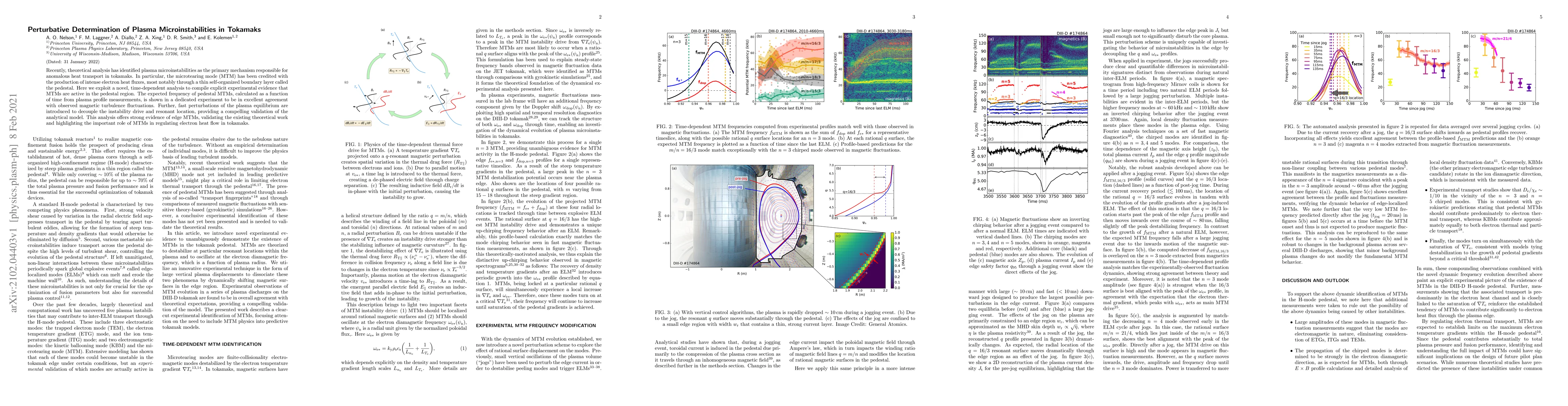 Recently, theoretical analysis has identified plasma microinstabilities as the primary mechanism responsible for anomalous heat transport in tokamaks. In particular, the microtearing mode (MTM) has been credited with the production of intense electron heat fluxes, most notably through a thin self-organized boundary layer called the pedestal. Here we exploit a novel, time-dependent analysis to compile explicit experimental evidence that MTMs are active in the pedestal region. The expected frequency of pedestal MTMs, calculated as a function of time from plasma profile measurements, is shown in a dedicated experiment to be in excellent agreement with observed magnetic turbulence fluctuations. Further, fast perturbations of the plasma equilibrium are introduced to decouple the instability drive and resonant location, providing a compelling validation of the analytical model. This analysis offers strong evidence of edge MTMs, validating the existing theoretical work and highlighting the important role of MTMs in regulating electron heat flow in tokamaks.