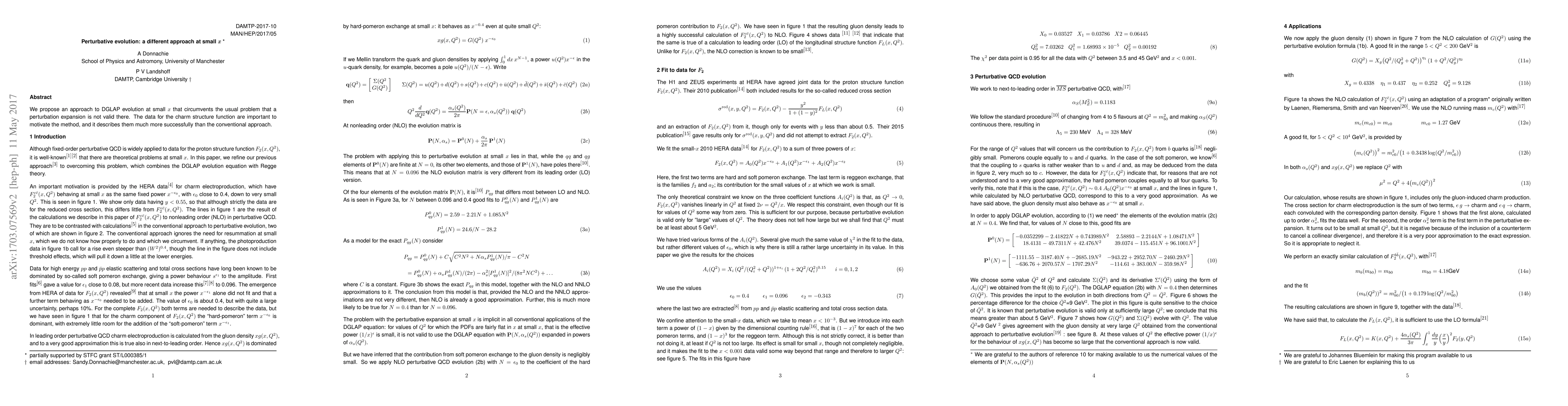 We propose an approach to DGLAP evolution at small x that circumvents the usual problem that a perturbation expansion is not valid there. The data for the charm structure function are important to motivate the method, and it describes them much more successfully than the conventional approach.