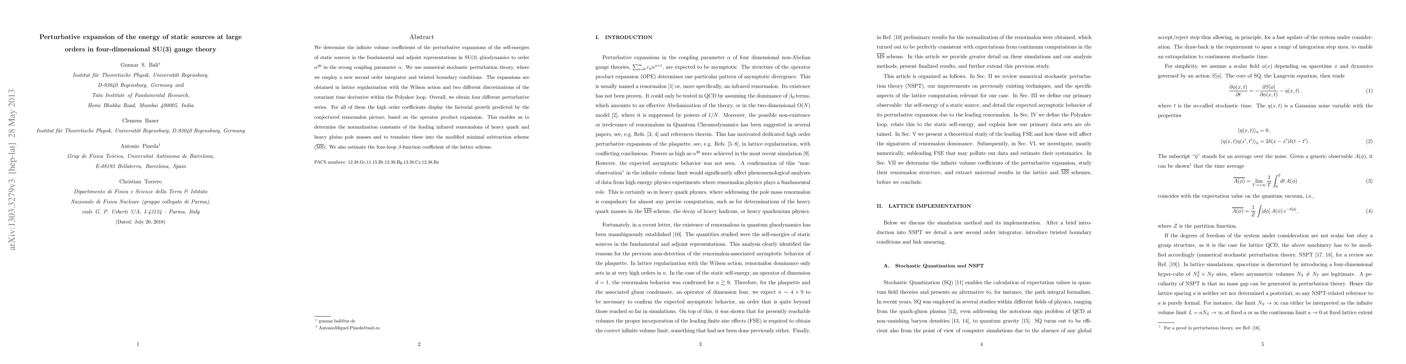 The paper presents high-order perturbative expansions of static source self-energies in SU(3) gluodynamics, calculated up to u221au03c0^20. Using numerical stochastic perturbation theory, new lattice discretizations, and twisted boundary conditions, four distinct series are obtained. These series show factorial growth, confirming the renormalon picture, and allow for determination of normalization constants for heavy quark and gluino pole masses in the MS scheme. The four-loop u03c3-function coefficient for the lattice scheme is also estimated.