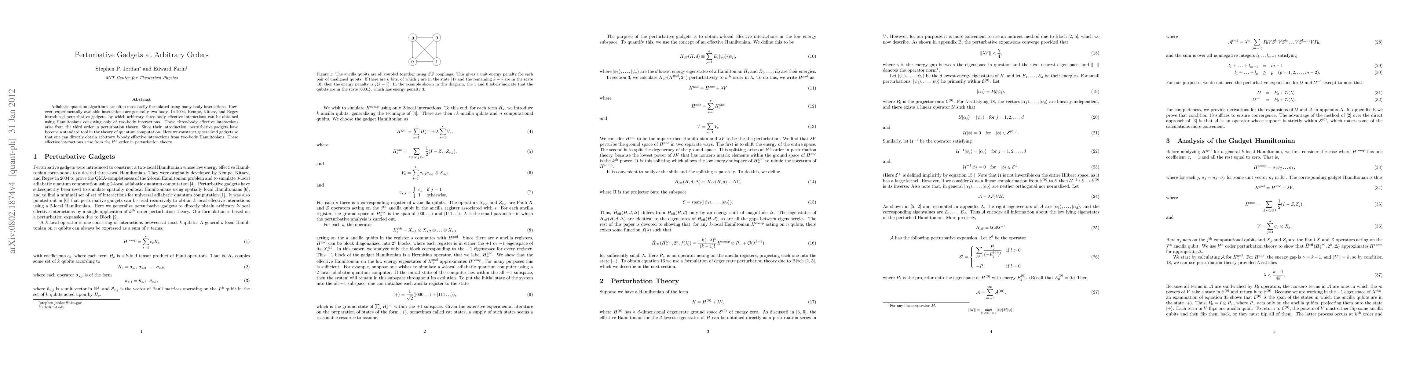 The paper introduces a method for creating k-body interactions from two-body interactions using perturbative gadgets, extending the utility of Kempe, Kitaev, and Regev's original perturbative gadgets.