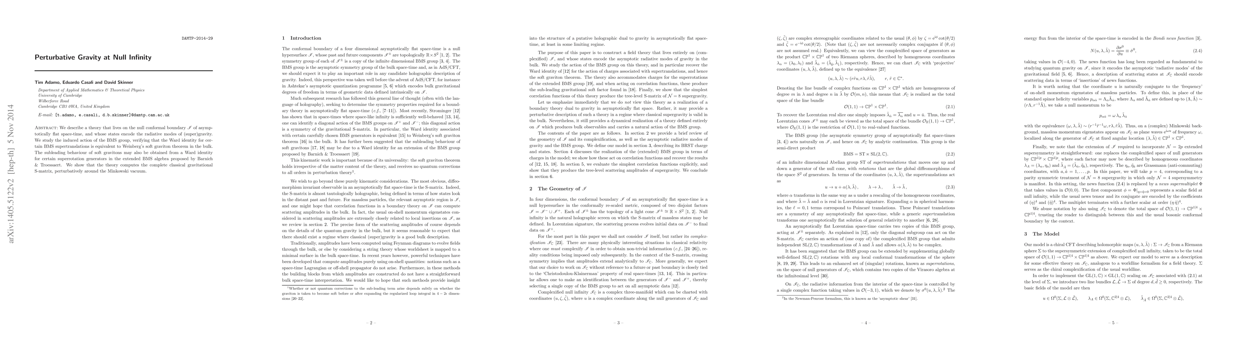We describe a theory that lives on the null conformal boundary of asymptotically flat space-time, and whose states encode the radiative modes of (super)gravity. We study the induced action of the BMS group, verifying that the Ward identity for certain BMS supertranslations is equivalent to Weinberg's soft graviton theorem in the bulk. The subleading behaviour of soft gravitons may also be obtained from a Ward identity for certain superrotation generators in the extended BMS algebra proposed by Barnich & Troessaert. We show that the theory computes the complete classical gravitational S-matrix, perturbatively around the Minkowski vacuum.