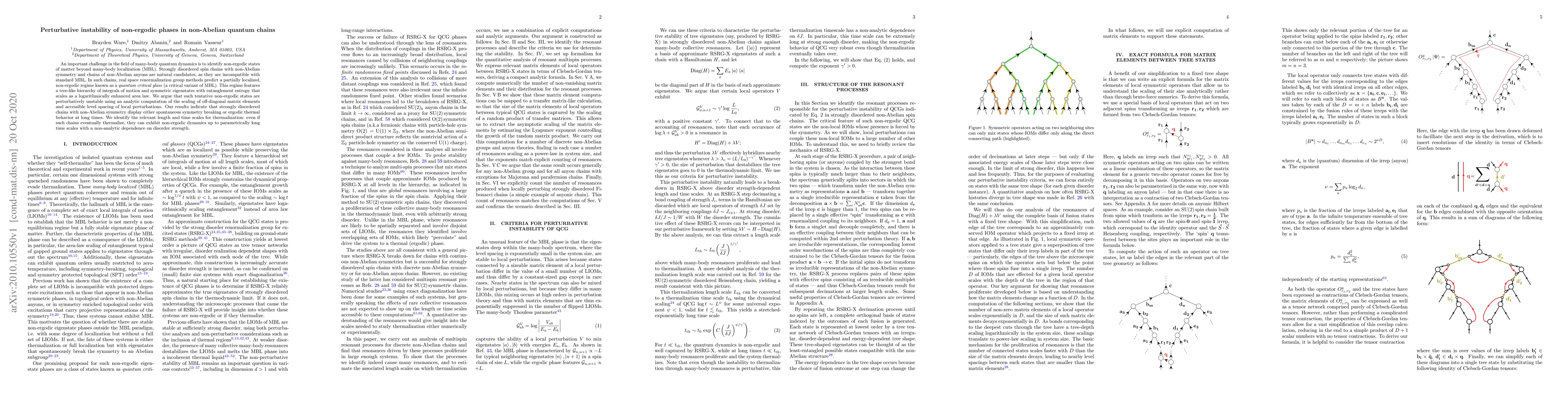This paper investigates the perturbative instability of non-ergodic phases in non-Abelian quantum chains, finding that these states are unstable to local perturbations, leading to either spontaneous symmetry breaking or ergodic thermal behavior. The study identifies the length and time scales at which thermalization occurs, even if non-ergodic dynamics can persist for long times dependent on disorder strength.
