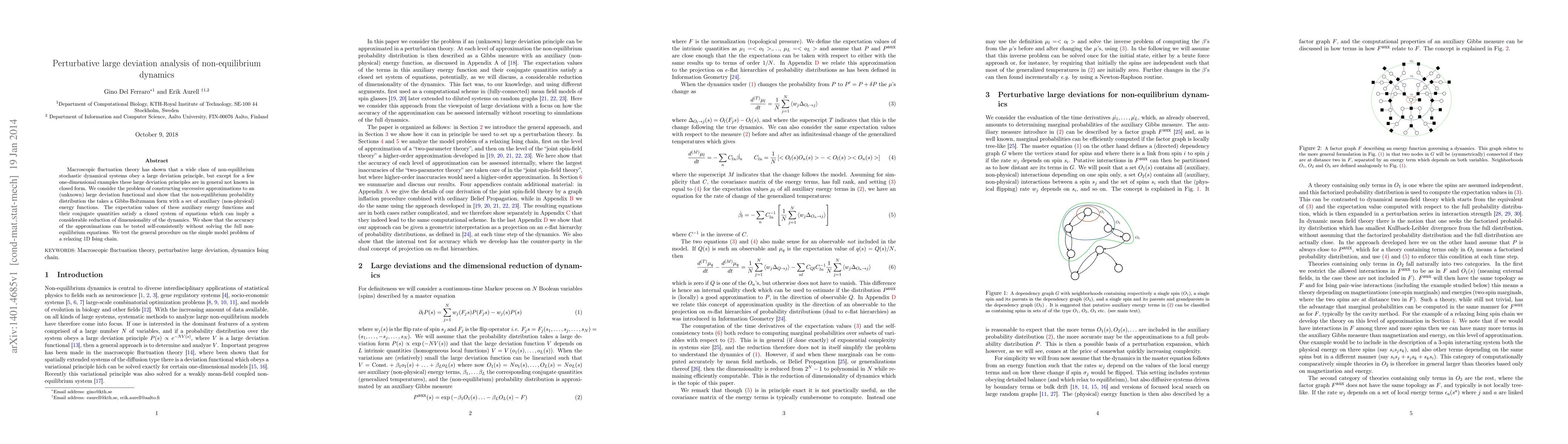 Macroscopic fluctuation theory has shown that a wide class of non-equilibrium stochastic dynamical systems obey a large deviation principle, but except for a few one-dimensional examples these large deviation principles are in general not known in closed form. We consider the problem of constructing successive approximations to an (unknown) large deviation functional and show that the non-equilibrium probability distribution the takes a Gibbs-Boltzmann form with a set of auxiliary (non-physical) energy functions. The expectation values of these auxiliary energy functions and their conjugate quantities satisfy a closed system of equations which can imply a considerable reduction of dimensionality of the dynamics. We show that the accuracy of the approximations can be tested self-consistently without solving the full non- equilibrium equations. We test the general procedure on the simple model problem of a relaxing 1D Ising chain.