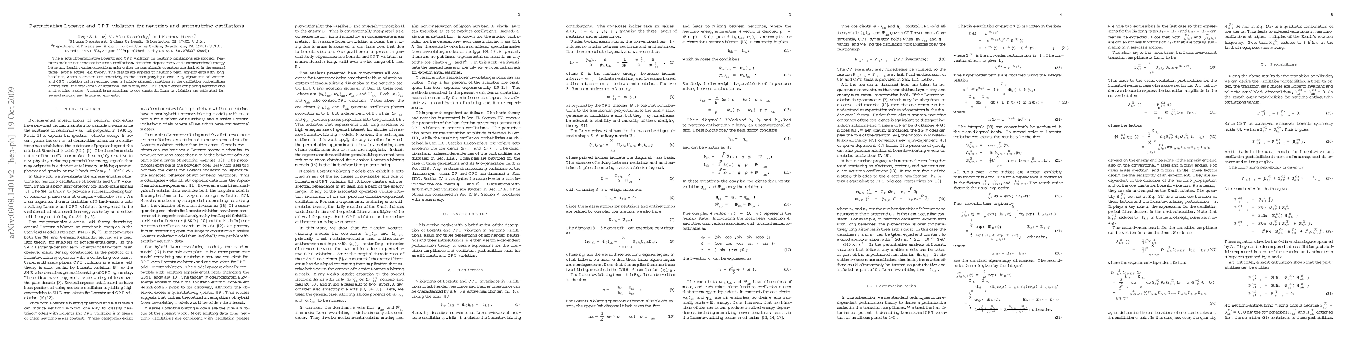 The effects of perturbative Lorentz and CPT violation on neutrino oscillations are studied. Features include neutrino-antineutrino oscillations, direction dependence, and unconventional energy behavior. Leading-order corrections arising from renormalizable operators are derived in the general three-flavor effective field theory. The results are applied to neutrino-beam experiments with long baselines, which offer excellent sensitivity to the accompanying effects. Key signatures of Lorentz and CPT violation using neutrino beams include sidereal variations in the oscillation probabilities arising from the breakdown of rotational symmetry, and CPT asymmetries comparing neutrino and antineutrino modes. Attainable sensitivities to coefficients for Lorentz violation are estimated for several existing and future experiments.