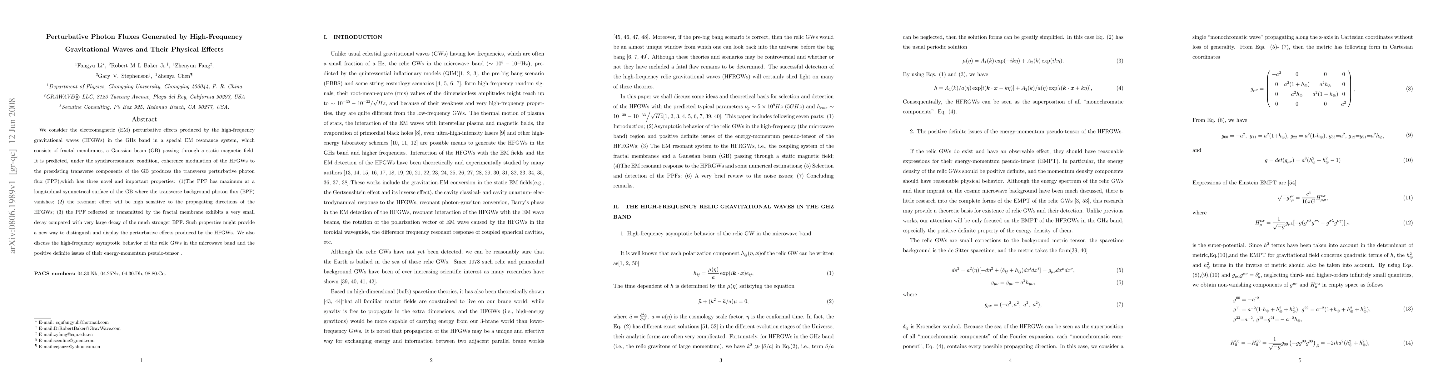 This paper investigates the electromagnetic perturbative effects caused by high-frequency gravitational waves in a special resonance system, predicting that coherence modulation under synchroresonance conditions generates a transverse perturbative photon flux with unique properties, such as minimal decay compared to the background photon flux. The study also addresses the high-frequency asymptotic behavior of relic gravitational waves and their energy-momentum pseudo-tensor.