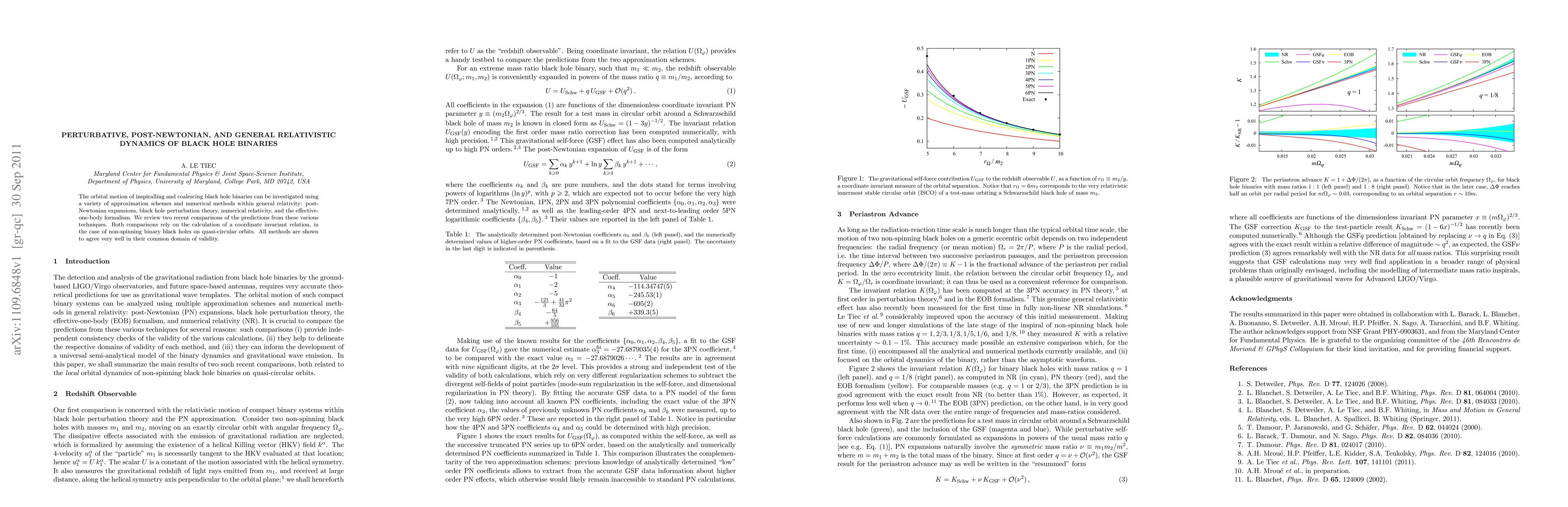 The orbital motion of inspiralling and coalescing black hole binaries can be investigated using a variety of approximation schemes and numerical methods within general relativity: post-Newtonian expansions, black hole perturbation theory, numerical relativity, and the effective-one-body formalism. We review two recent comparisons of the predictions from these various techniques. Both comparisons rely on the calculation of a coordinate invariant relation, in the case of non-spinning binary black holes on quasi-circular orbits. All methods are shown to agree very well in their common domain of validity.