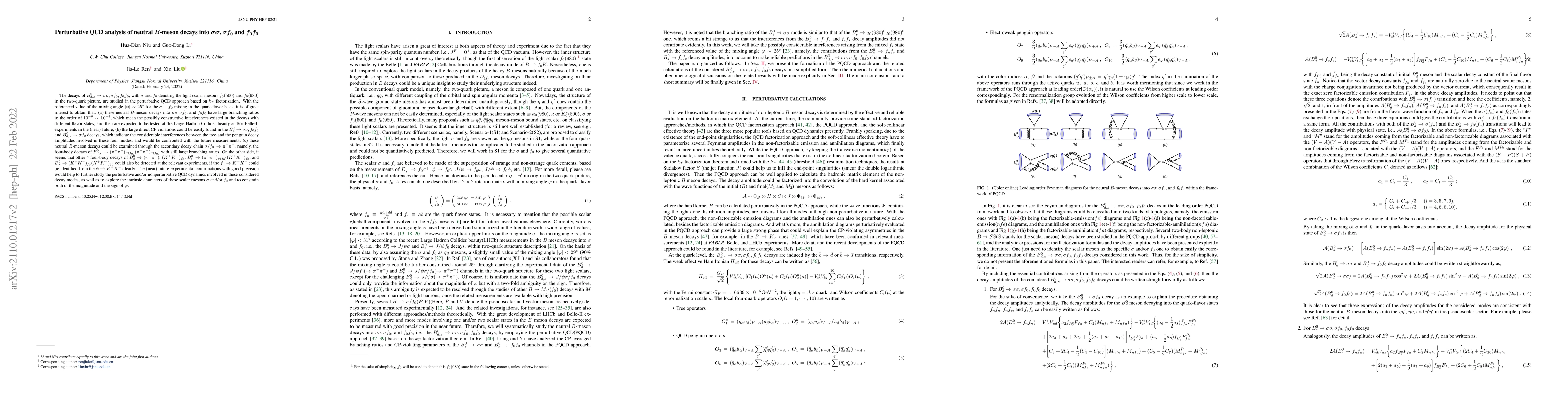 This paper uses perturbative QCD to analyze neutral $B$-meson decays into light scalar mesons $\sigma$ and $f_0$. It predicts large branching ratios and significant direct CP violations, suggesting these decays could be detected at the LHC and Belle-II, with implications for understanding interference between decay amplitudes.