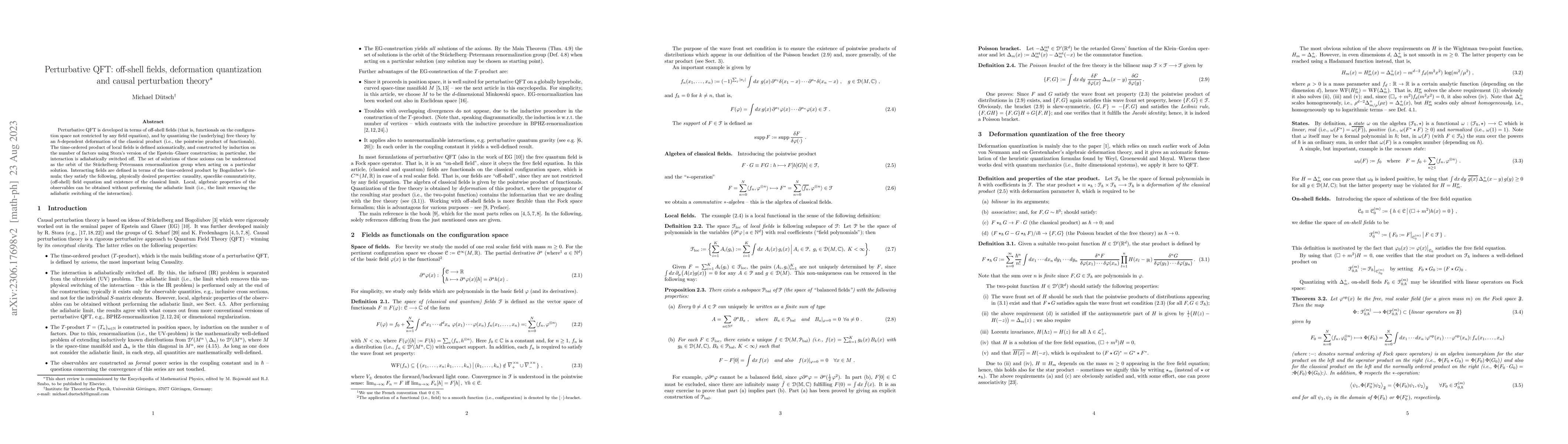 This paper develops perturbative quantum field theory (QFT) using off-shell fields and deformation quantization, defining time-ordered products via induction and ensuring causality, commutativity, and the existence of a classical limit without the adiabatic limit. Interacting fields are constructed via Bogoliubov's formula, satisfying desired physical properties and local algebraic properties of observables.