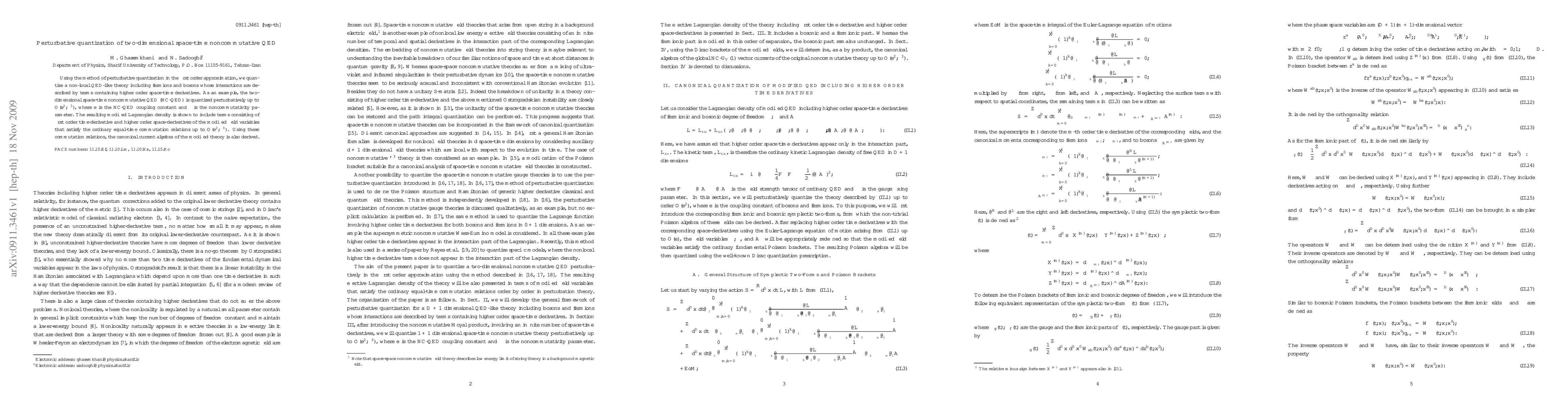 Using the method of perturbative quantization in the first order approximation, we quantize a non-local QED-like theory including fermions and bosons whose interactions are described by terms containing higher order space-time derivatives. As an example, the two-dimensional space-time noncommutative QED (NC-QED) is quantized perturbatively up to O(e^2,\theta^3), where e is the NC-QED coupling constant and \theta is the noncommutativity parameter. The resulting modified Lagrangian density is shown to include terms consisting of first order time-derivative and higher order space-derivatives of the modified field variables that satisfy the ordinary equal-time commutation relations up to O(e^2,\theta^3. Using these commutation relations, the canonical current algebra of the modified theory is also derived.