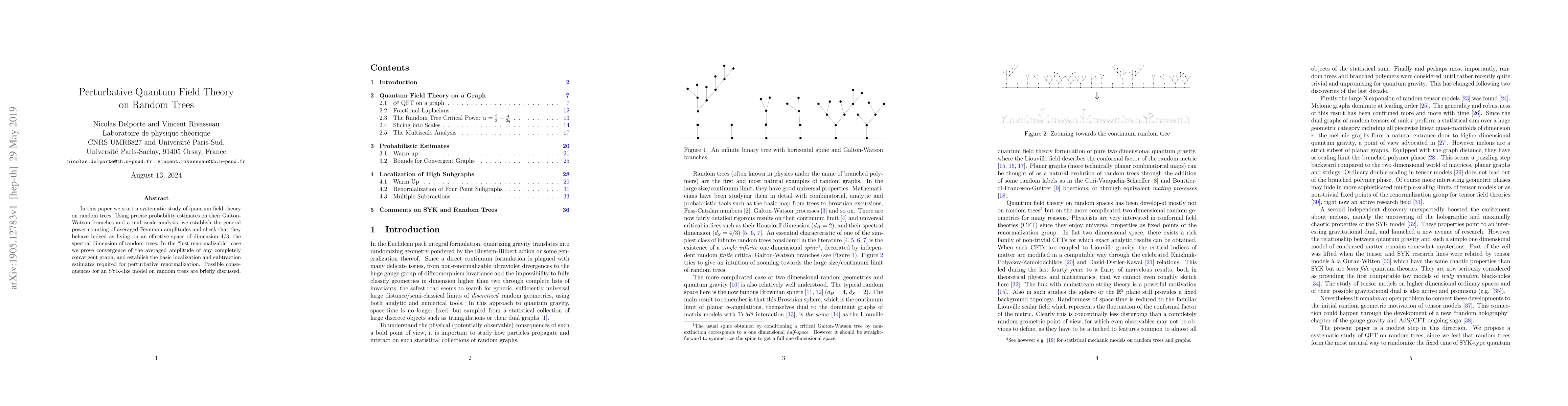 This paper initiates a systematic study of quantum field theory on random trees, establishing the power counting of averaged Feynman amplitudes and proving convergence for the `just renormalizable' case, with implications for SYK-like models on these structures.