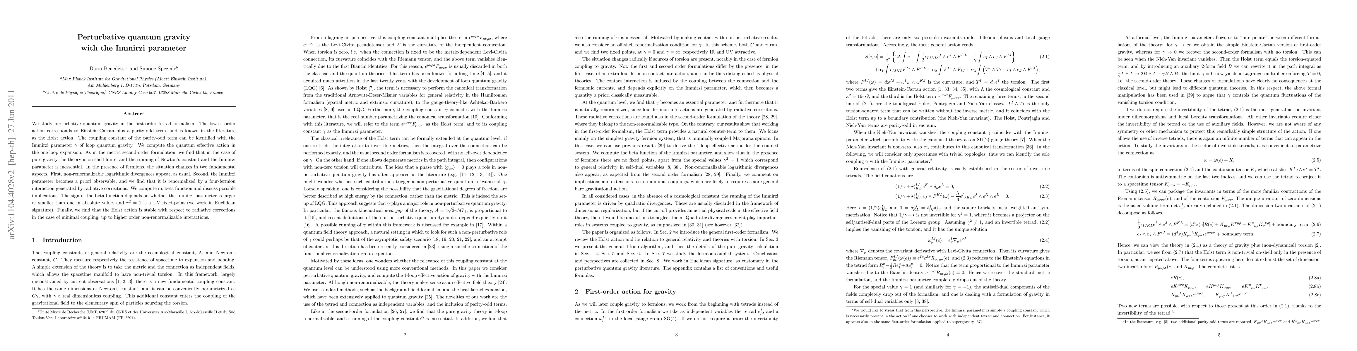 This paper investigates perturbative quantum gravity using the first-order tetrad formalism, focusing on the Holst action which includes the Immirzi parameter. It finds that pure gravity remains on-shell finite, while the presence of fermions introduces non-renormalizable divergences and renders the Immirzi parameter observable and renormalized by four-fermion interactions.