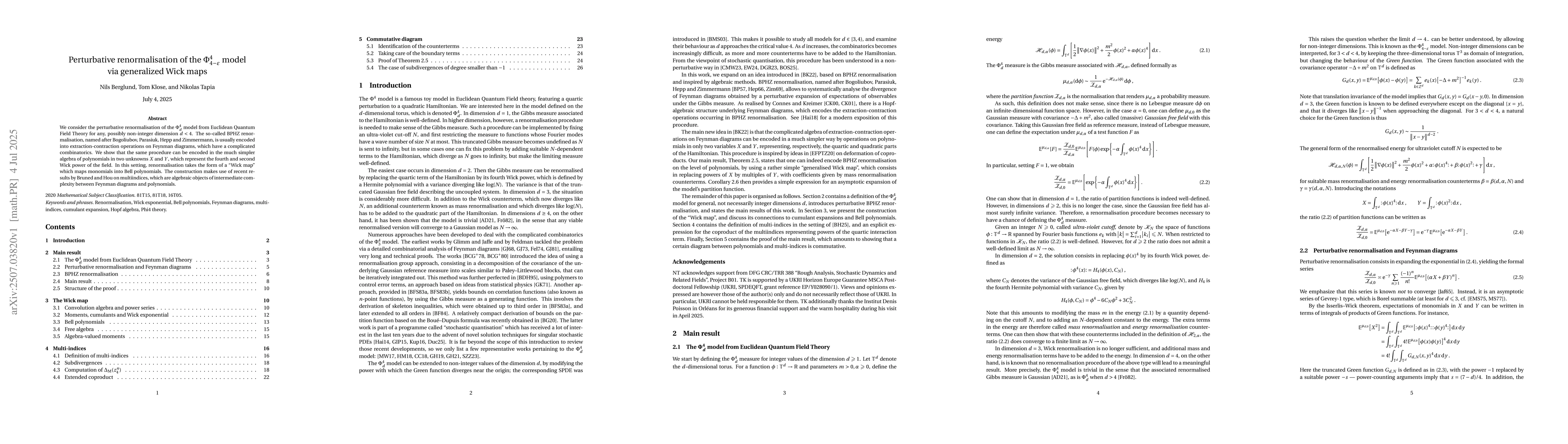We consider the perturbative renormalisation of the $\Phi^4_d$ model from Euclidean Quantum Field Theory for any, possibly non-integer dimension $d<4$. The so-called BPHZ renormalisation, named after Bogoliubov, Parasiuk, Hepp and Zimmermann, is usually encoded into extraction-contraction operations on Feynman diagrams, which have a complicated combinatorics. We show that the same procedure can be encoded in the much simpler algebra of polynomials in two unknowns $X$ and $Y$, which represent the fourth and second Wick power of the field. In this setting, renormalisation takes the form of a \lq\lq Wick map\rq\rq\ which maps monomials into Bell polynomials. The construction makes use of recent results by Bruned and Hou on multiindices, which are algebraic objects of intermediate complexity between Feynman diagrams and polynomials.