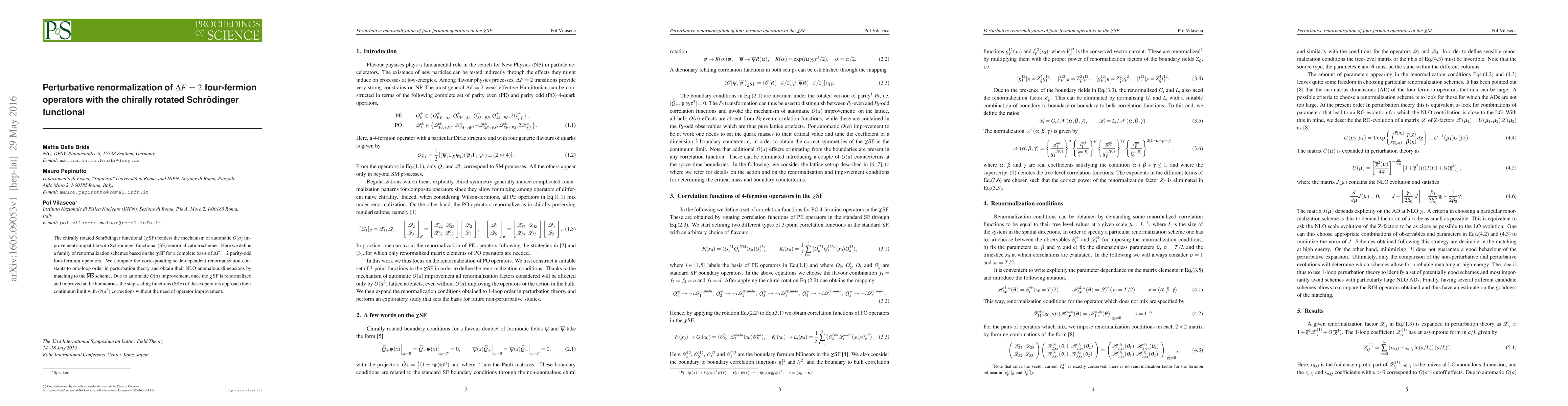The chirally rotated Schr\"odinger functional ($\chi$SF) renders the mechanism of automatic $O(a)$ improvement compatible with Schr\"odinger functional (SF) renormalization schemes. Here we define a family of renormalization schemes based on the $\chi$SF for a complete basis of $\Delta F = 2$ parity-odd four-fermion operators. We compute the corresponding scale-dependent renormalization constants to one-loop order in perturbation theory and obtain their NLO anomalous dimensions by matching to the $\overline{\textrm{MS}}$ scheme. Due to automatic $O(a)$ improvement, once the $\chi$SF is renormalized and improved at the boundaries, the step scaling functions (SSF) of these operators approach their continuum limit with $O(a^{2})$ corrections without the need of operator improvement.