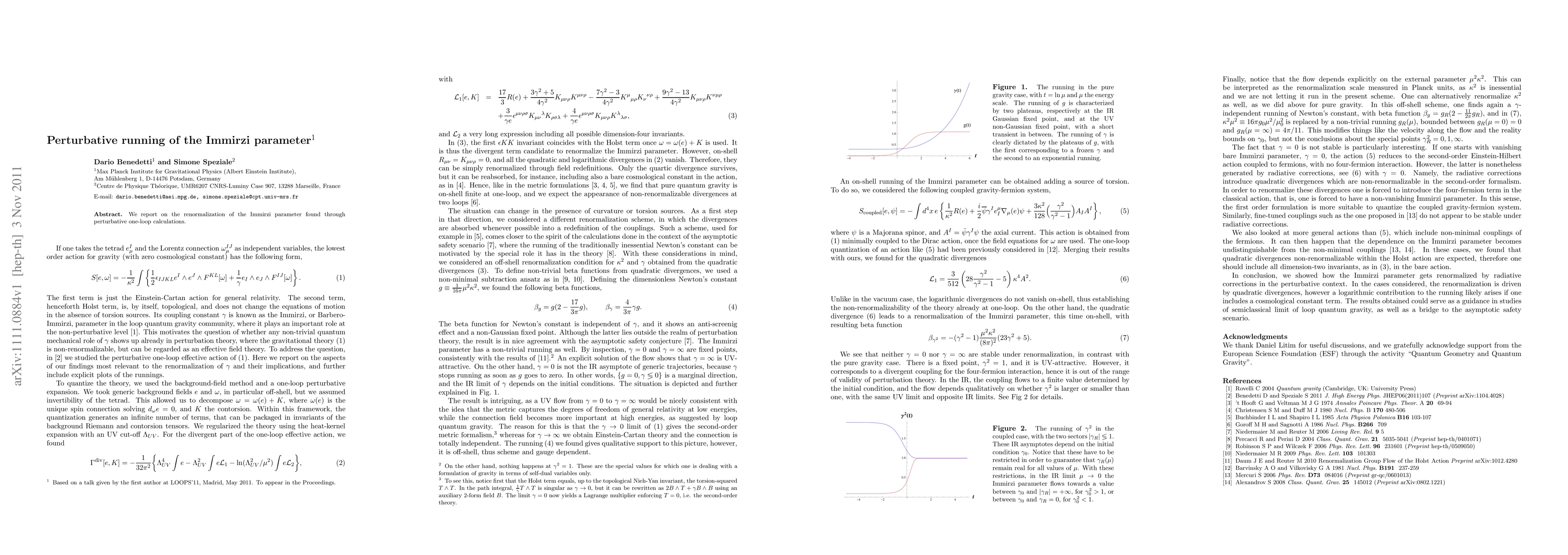 We report on the renormalization of the Immirzi parameter found through perturbative one-loop calculations.