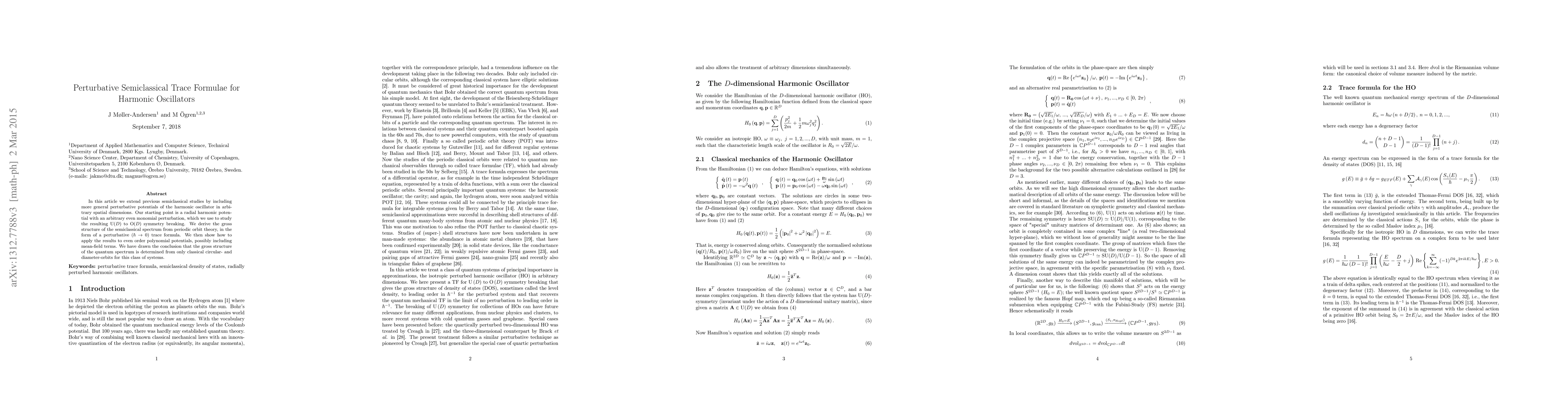 This paper extends semiclassical studies of harmonic oscillators by incorporating perturbative potentials and examining symmetry breaking from $\mathrm{U}(D)$ to $\mathrm{O}(D)$. It derives a perturbative trace formula using periodic orbit theory to determine the gross structure of the quantum spectrum, concluding that classical circular- and diameter-orbits primarily dictate the spectrum for these systems.