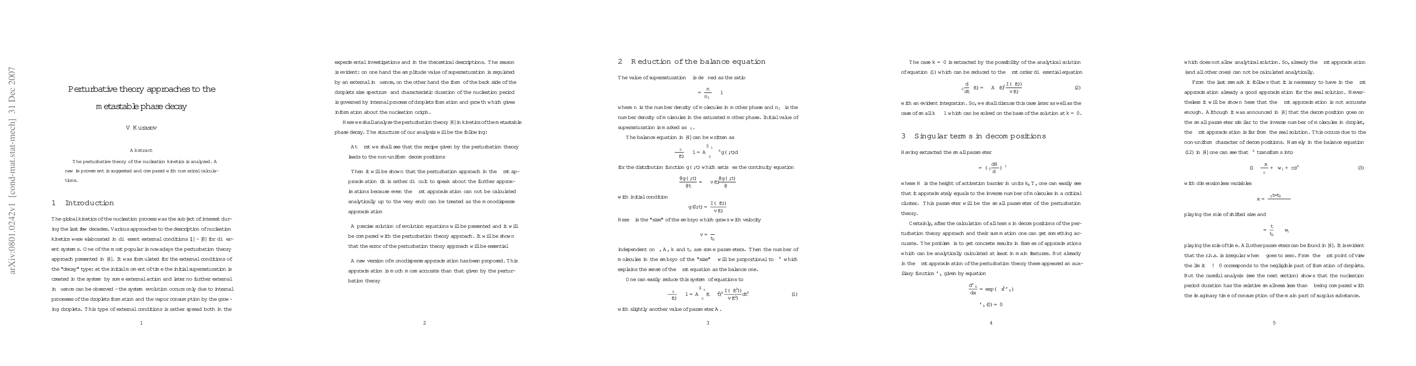 The perturbative theory of the nucleation kinetics is analyzed. A new improvement is suggested and compared with numerical calculations.