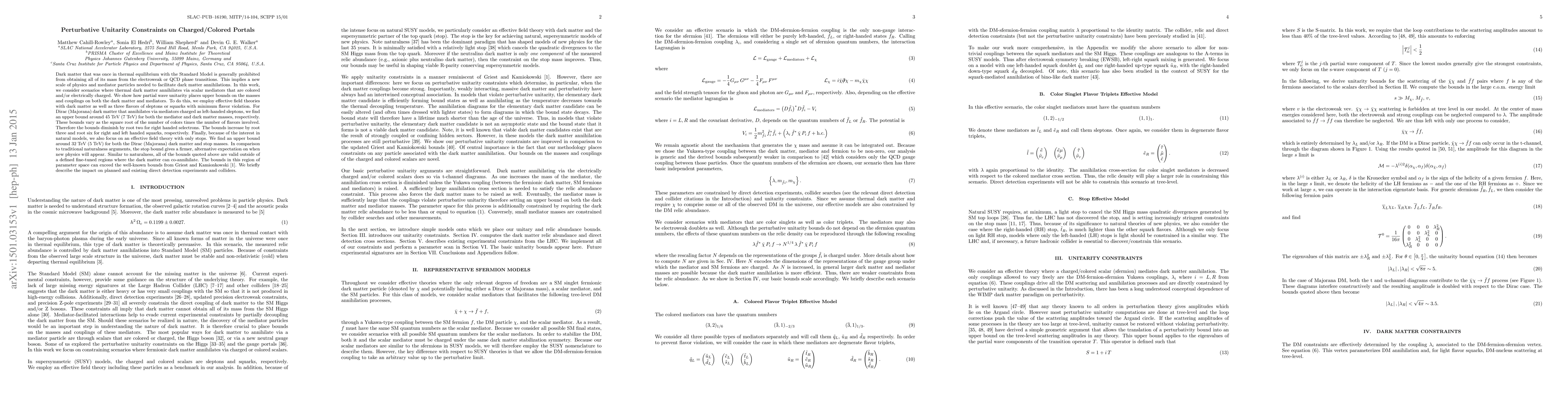 Dark matter that was once in thermal equilibrium with the Standard Model is generally prohibited from obtaining all of its mass from the electroweak or QCD phase transitions. This implies a new scale of physics and mediator particles needed to facilitate dark matter annihilations. In this work, we consider scenarios where thermal dark matter annihilates via scalar mediators that are colored and/or electrically charged. We show how partial wave unitarity places upper bounds on the masses and couplings on both the dark matter and mediators. To do this, we employ effective field theories with dark matter as well as three flavors of sleptons or squarks with minimum flavor violation. For Dirac (Majorana) dark matter that annihilates via mediators charged as left-handed sleptons, we find an upper bound around 45 TeV (7 TeV) for both the mediator and dark matter masses, respectively. These bounds vary as the square root of the number of colors times the number of flavors involved. Therefore the bounds diminish by root two for right handed selectrons. The bounds increase by root three and root six for right and left handed squarks, respectively. Finally, because of the interest in natural models, we also focus on an effective field theory with only stops. We find an upper bound around 32 TeV (5 TeV) for both the Dirac (Majorana) dark matter and stop masses. In comparison to traditional naturalness arguments, the stop bound gives a firmer, alternative expectation on when new physics will appear. Similar to naturalness, all of the bounds quoted above are valid outside of a defined fine-tuned regions where the dark matter can co-annihilate. The bounds in this region of parameter space can exceed the well-known bounds from Griest and Kamionkowski. We briefly describe the impact on planned and existing direct detection experiments and colliders.