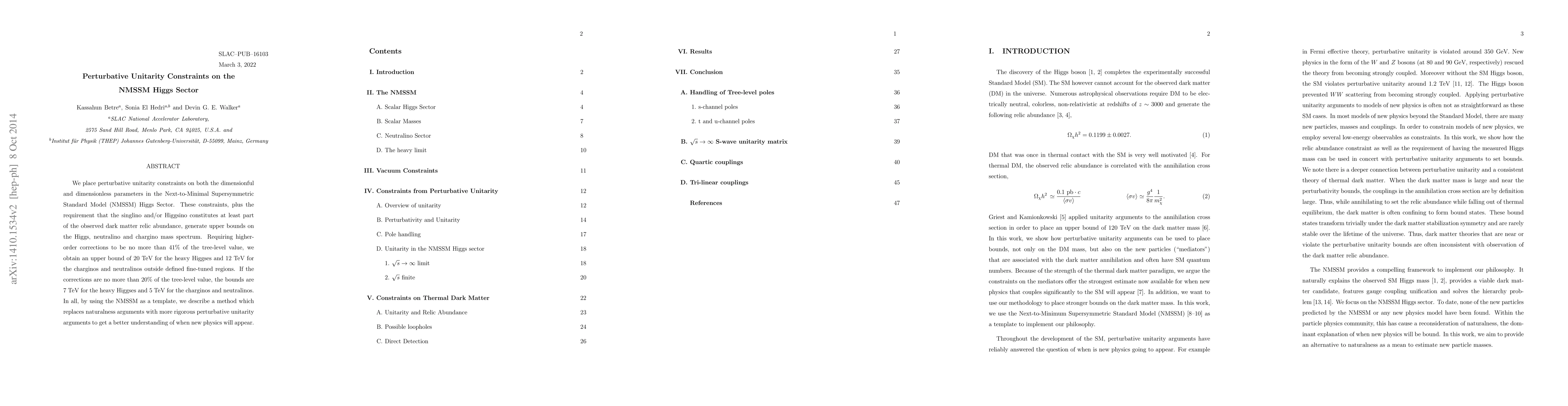 We place perturbative unitarity constraints on both the dimensionful and dimensionless parameters in the Next-to-Minimal Supersymmetric Standard Model (NMSSM) Higgs Sector. These constraints, plus the requirement that the singlino and/or Higgsino constitutes at least part of the observed dark matter relic abundance, generate upper bounds on the Higgs, neutralino and chargino mass spectrum. Requiring higher order corrections to be no more than 41% of the tree-level value, we obtain an upper bound of 20 TeV for the heavy Higgses and 12 TeV for the charginos and neutralinos outside defined fine-tuned regions. If the corrections are no more than 20% of the tree-level value, the bounds are 7 TeV for the heavy Higgses and 5 TeV for the charginos and neutralinos. In all, by using the NMSSM as a template, we describe a method which replaces naturalness arguments with more rigorous perturbative unitarity arguments to get a better understanding of when new physics will appear.