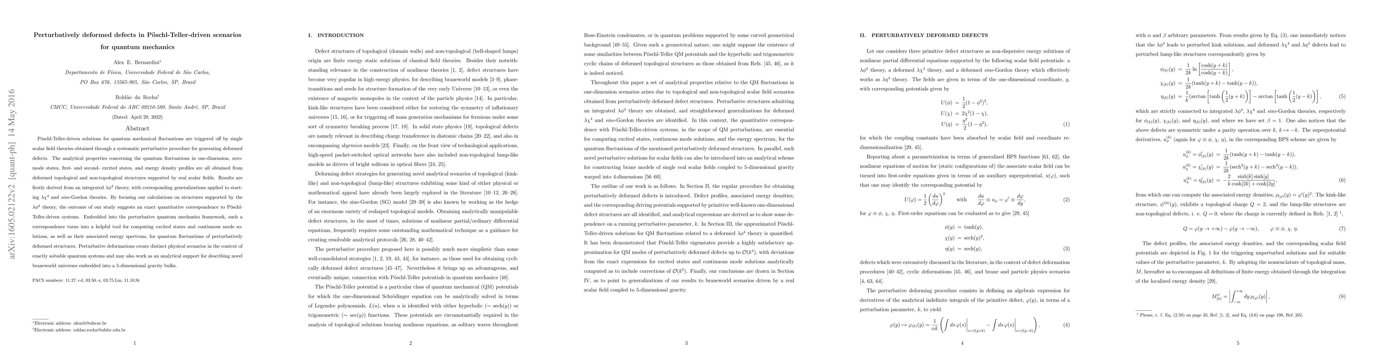 P\"oschl-Teller-driven solutions for quantum mechanical fluctuations are triggered off by single scalar field theories obtained through a systematic perturbative procedure for generating deformed defects. The analytical properties concerning the quantum fluctuations in one-dimension, zero-mode states, first- and second- excited states, and energy density profiles are all obtained from deformed topological and non-topological structures supported by real scalar fields. Results are firstly derived from an integrated $\lambda \phi^4$ theory, with corresponding generalizations applied to starting $\lambda \chi^4$ and {\em sine}-Gordon theories. By focusing our calculations on structures supported by the $\lambda\phi^4$ theory, the outcome of our study suggests an exact quantitative correspondence to P\"oschl-Teller-driven systems. Embedded into the perturbative quantum mechanics framework, such a correspondence turns into a helpful tool for computing excited states and continuous mode solutions, as well as their associated energy spectrum, for quantum fluctuations of perturbatively deformed structures. Perturbative deformations create distinct physical scenarios in the context of exactly solvable quantum systems and may also work as an analytical support for describing novel braneworld universes embedded into a $5$-dimensional gravity bulks.