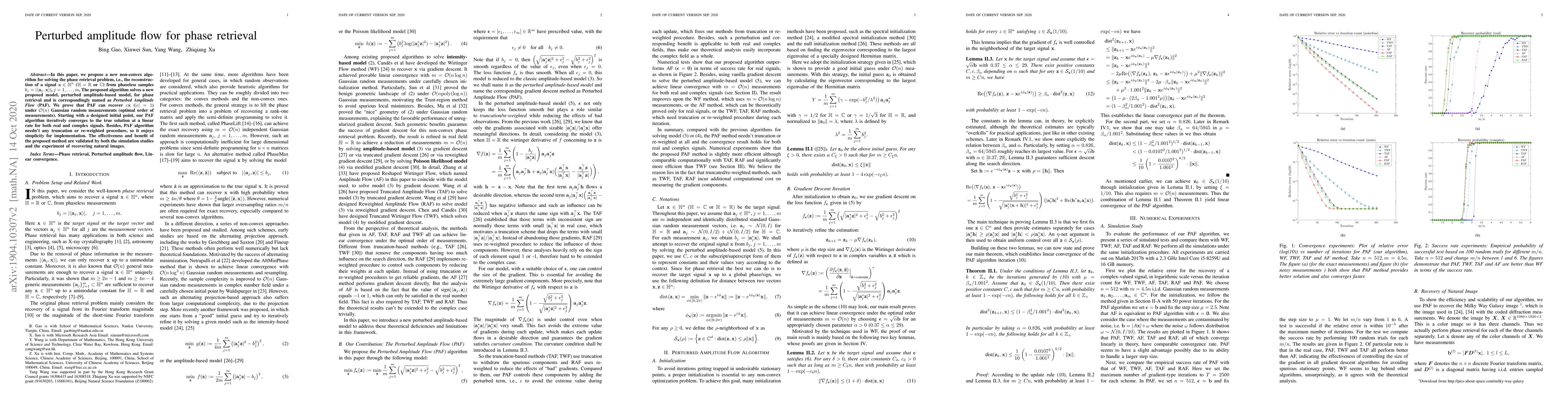 This paper introduces a new non-convex algorithm called Perturbed Amplitude Flow (PAF) for solving phase retrieval problems, demonstrating optimal convergence under $\mathcal{O}(n)$ Gaussian random measurements and simplicity in implementation without requiring truncation or re-weighting procedures. Simulation studies and natural image recovery experiments validate the effectiveness of the proposed method.