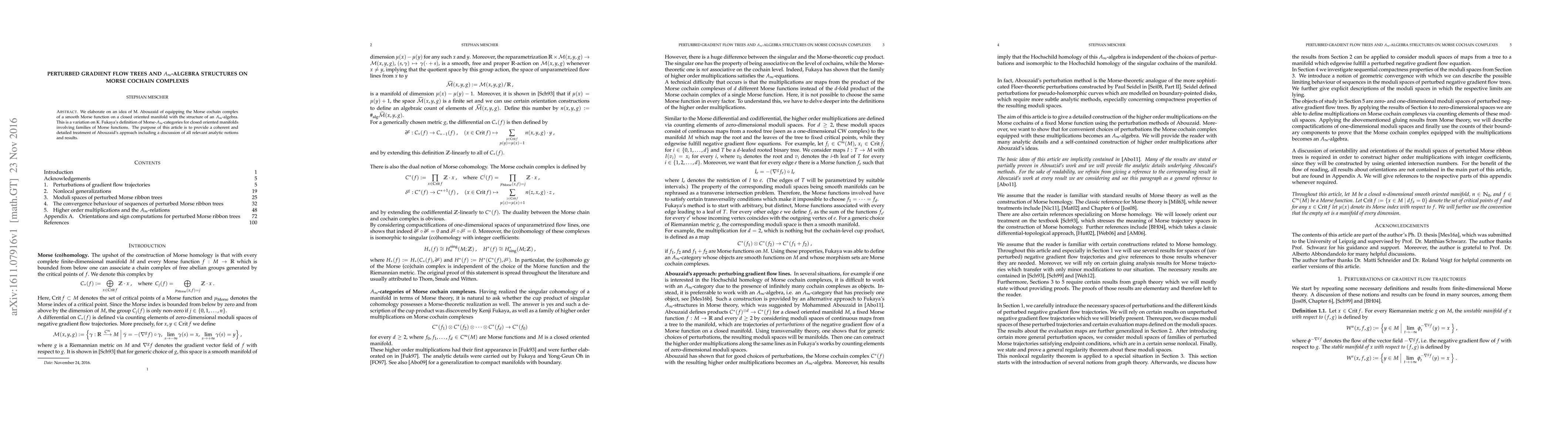 This paper develops an $A_\infty$-algebra structure on the Morse cochain complex of a smooth Morse function on a closed oriented manifold, following an idea by M. Abouzaid. It provides a comprehensive treatment of the method, including discussions on pertinent analytic concepts and results.