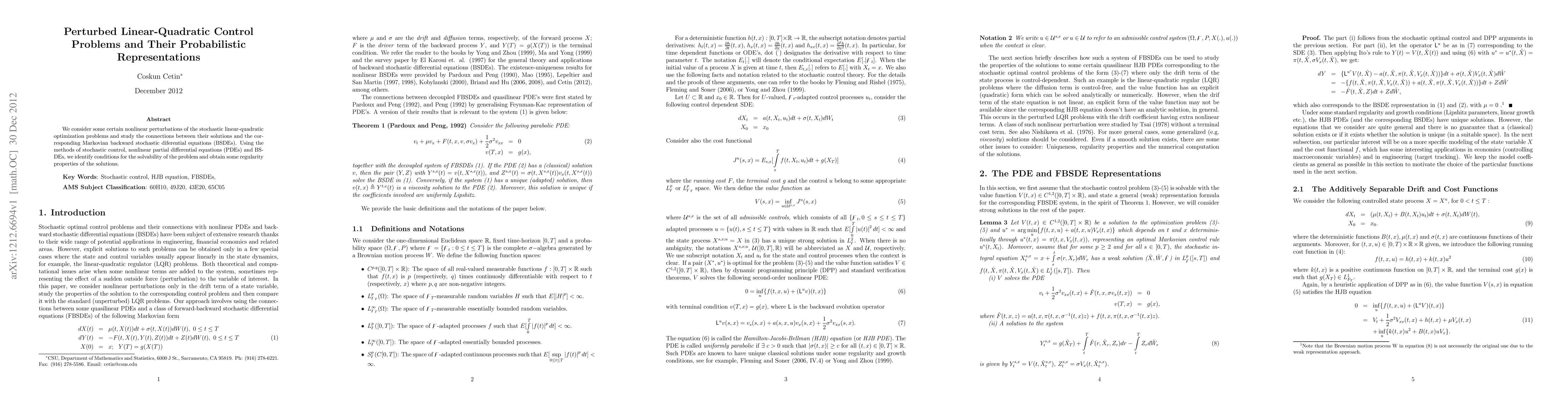 This research explores perturbations of stochastic linear-quadratic optimization problems, linking their solutions to Markovian backward stochastic differential equations (BSDEs). Utilizing stochastic control, nonlinear PDEs, and BSDEs methods, the study identifies solvability conditions and examines solution regularity properties.