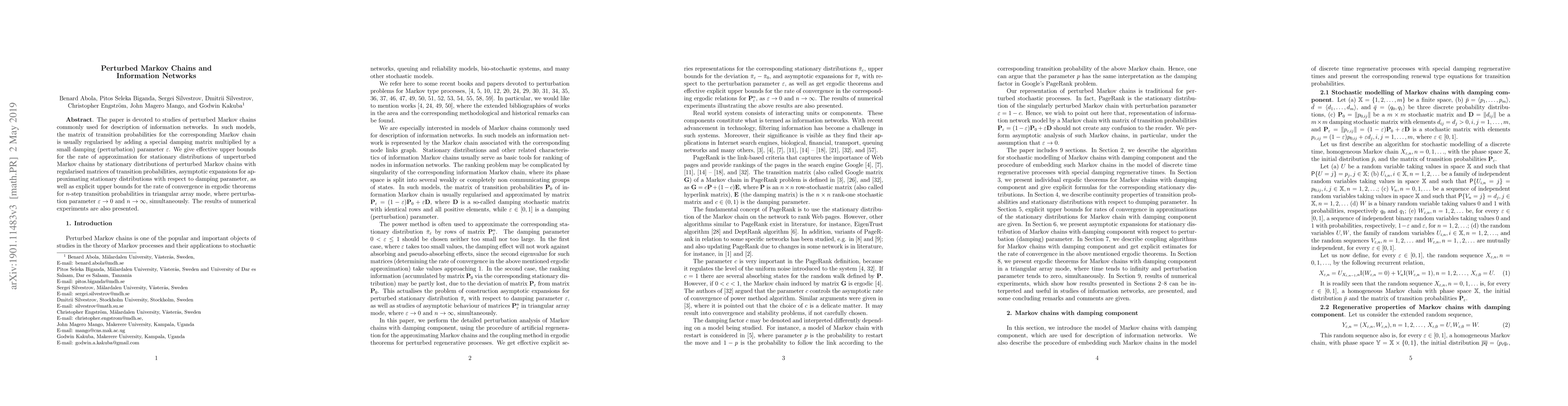 This paper investigates perturbed Markov chains used in information networks, providing upper bounds for the rate of approximation of stationary distributions and asymptotic expansions for convergence with respect to the damping parameter. Numerical experiments support the theoretical findings.