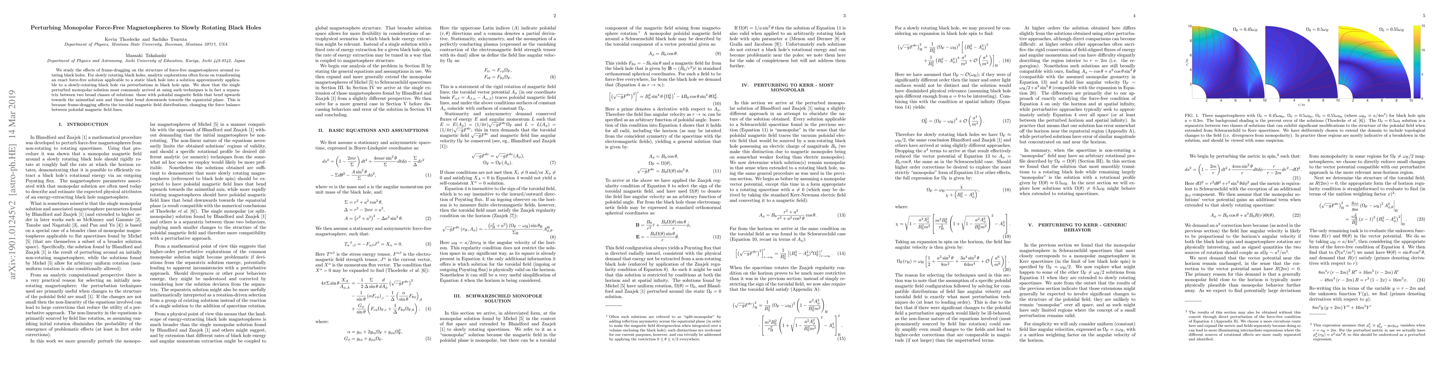 We study the effects of frame-dragging on the structure of force-free magnetospheres around rotating black holes. For slowly rotating black holes, analytic explorations often focus on transforming an exact force-free solution applicable to a static black hole into a solution approximately applicable to a slowly-rotating black hole via perturbations in black hole spin. We show that the single perturbed monopolar solution most commonly arrived at using such techniques is in fact a separatrix between two broad classes of solutions: those with poloidal magnetic fields that bend upwards towards the azimuthal axis and those that bend downwards towards the equatorial plane. This is because frame-dragging affects the toroidal magnetic field distributions, changing the force balance between poloidal magnetic field lines.