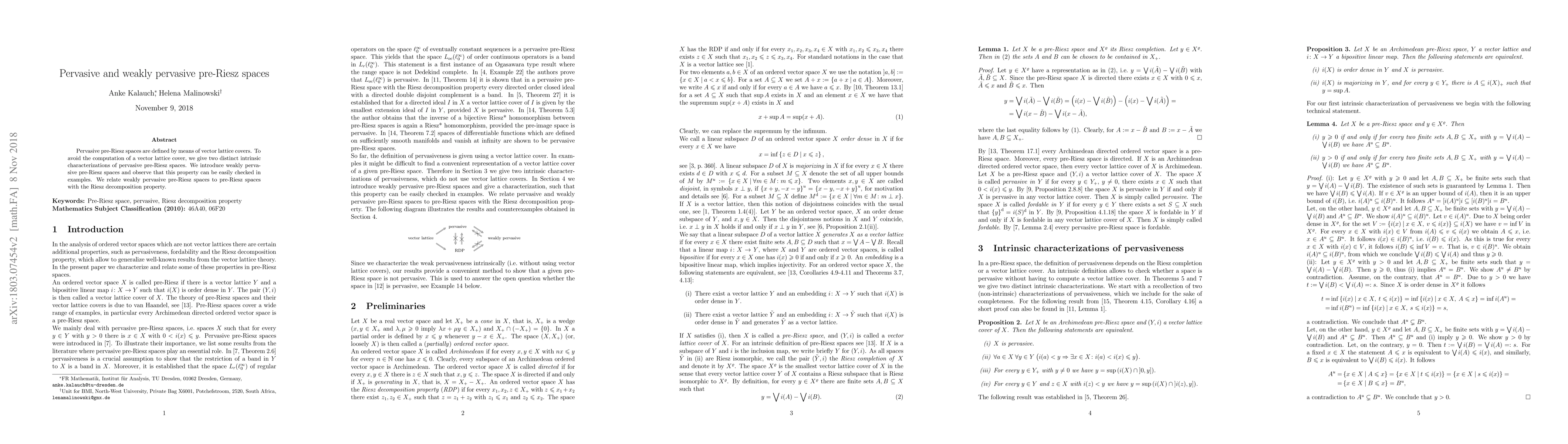 This paper defines pervasive pre-Riesz spaces using vector lattice covers and provides intrinsic characterizations for easier identification. It introduces weakly pervasive pre-Riesz spaces, offering an easy verification method, and connects them to pre-Riesz spaces with the Riesz decomposition property.