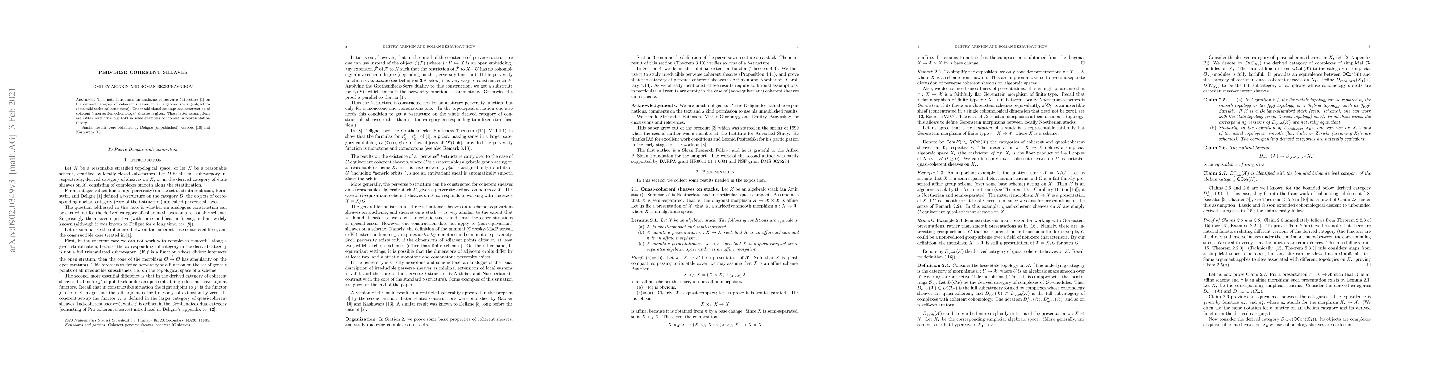 The paper develops an analogue of perverse sheaves in the context of the derived category of coherent sheaves on algebraic stacks, constructing coherent "intersection cohomology" complexes under specific assumptions. It updates and replaces the previous preprint arXiv:math/0005152 by the second author.