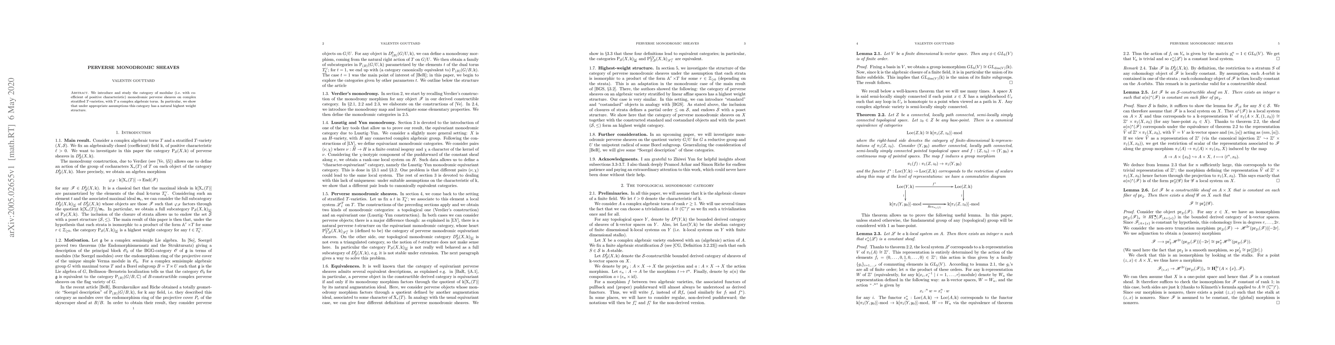 We introduce and study the category of modular (i.e. with coefficient of positive characteristic) monodromic perverse sheaves on complex stratified $T$-varieties, with $T$ a complex algebraic torus. In particular, we show that under appropriate assumptions this category has a natural highest weight structure.