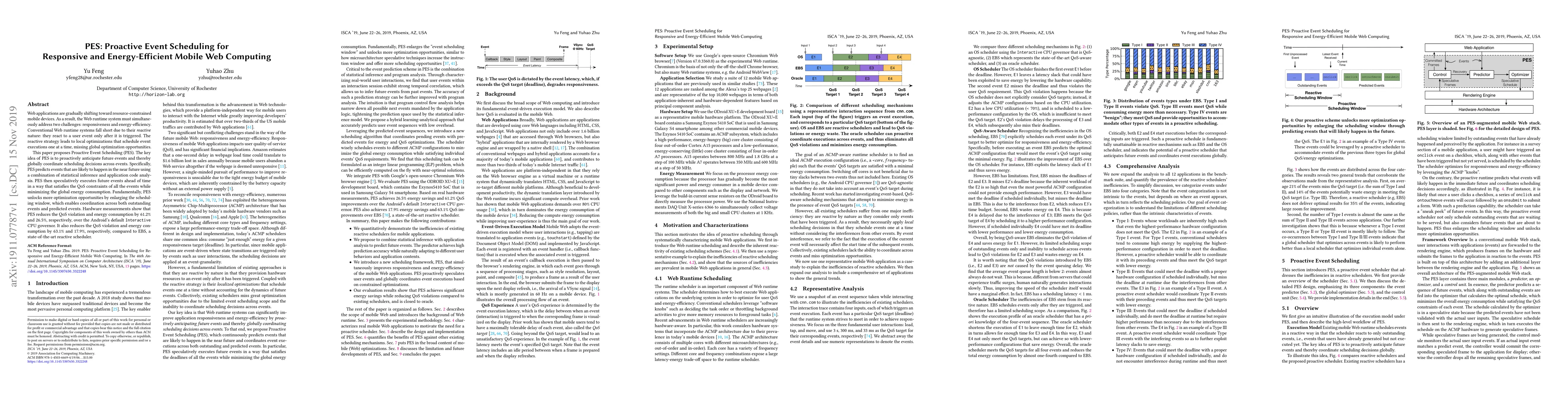 This paper introduces Proactive Event Scheduling (PES) to enhance responsiveness and energy efficiency in mobile web computing. PES anticipates future events through statistical inference and code analysis, scheduling them globally to optimize both quality of service and energy use, achieving significant reductions in QoS violations and energy consumption compared to reactive approaches.