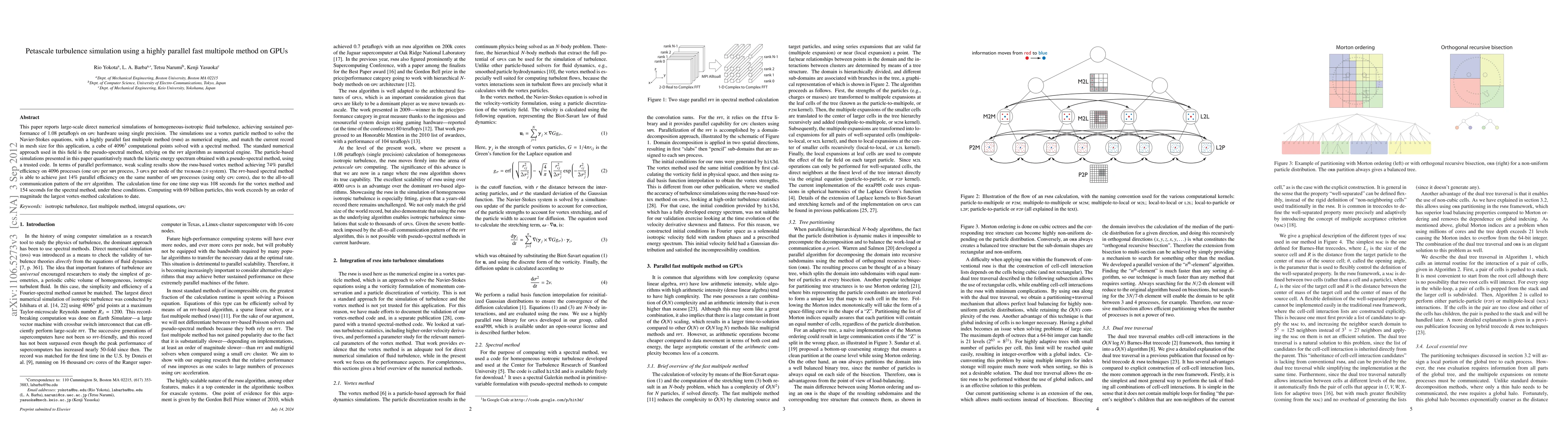 This paper presents a petascale turbulence simulation using a GPU-based vortex particle method with a highly parallel fast multipole method, achieving 1.08 petaflop/s and surpassing previous records in computational scale. The method demonstrates superior parallel efficiency compared to the FFT-based spectral method, highlighting its potential for large-scale fluid dynamics simulations.