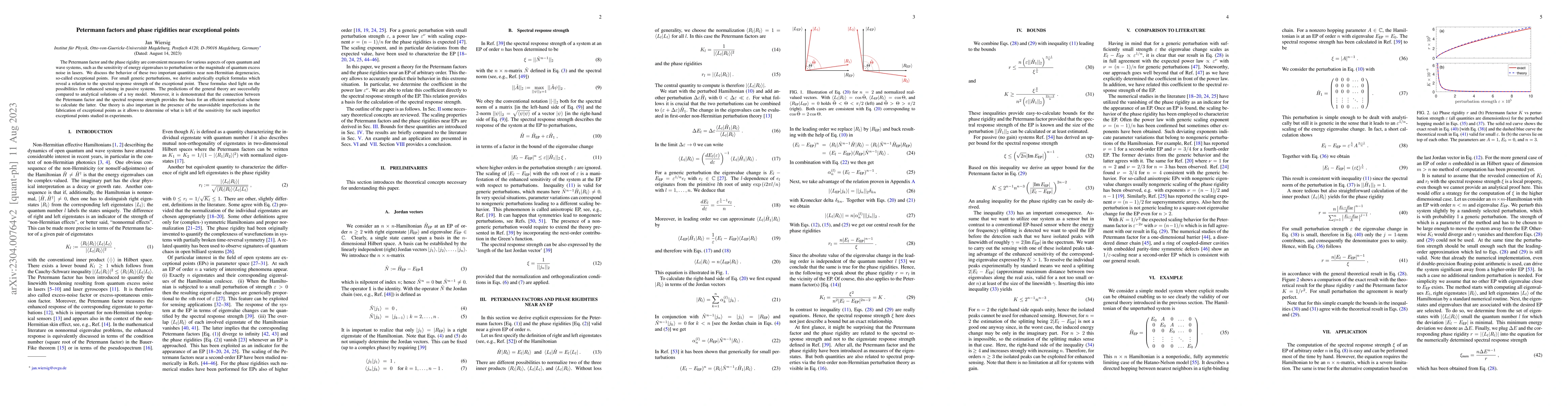 This paper investigates the behavior of the Petermann factor and phase rigidity near exceptional points in non-Hermitian systems, revealing their relation to spectral response strength and enhanced sensing capabilities. Analytical formulas derived provide a basis for efficient numerical calculations and insights into sensitivity in imperfect systems.