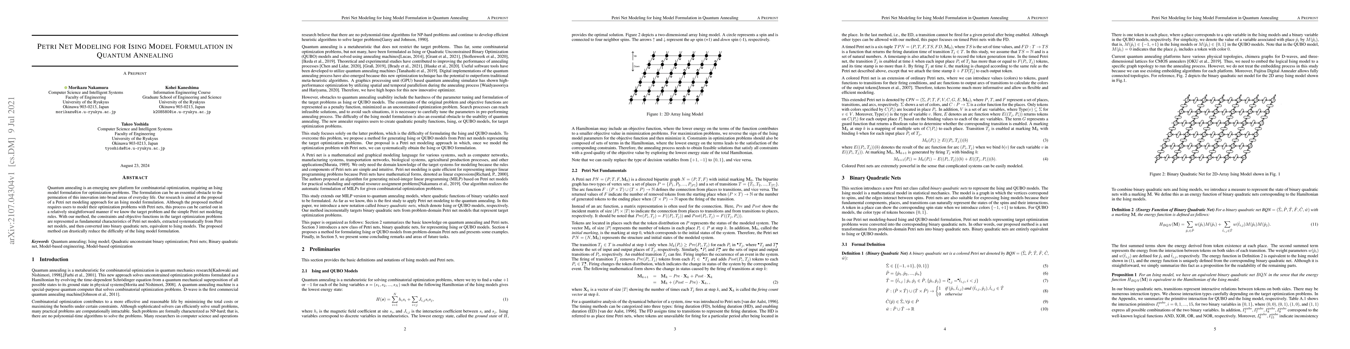 This paper proposes a Petri net modeling approach to simplify the Ising model formulation for quantum annealing, aiming to ease the complexity of optimization problem modeling. The method translates constraints and objective functions into binary quadratic nets, significantly reducing the difficulty for users.