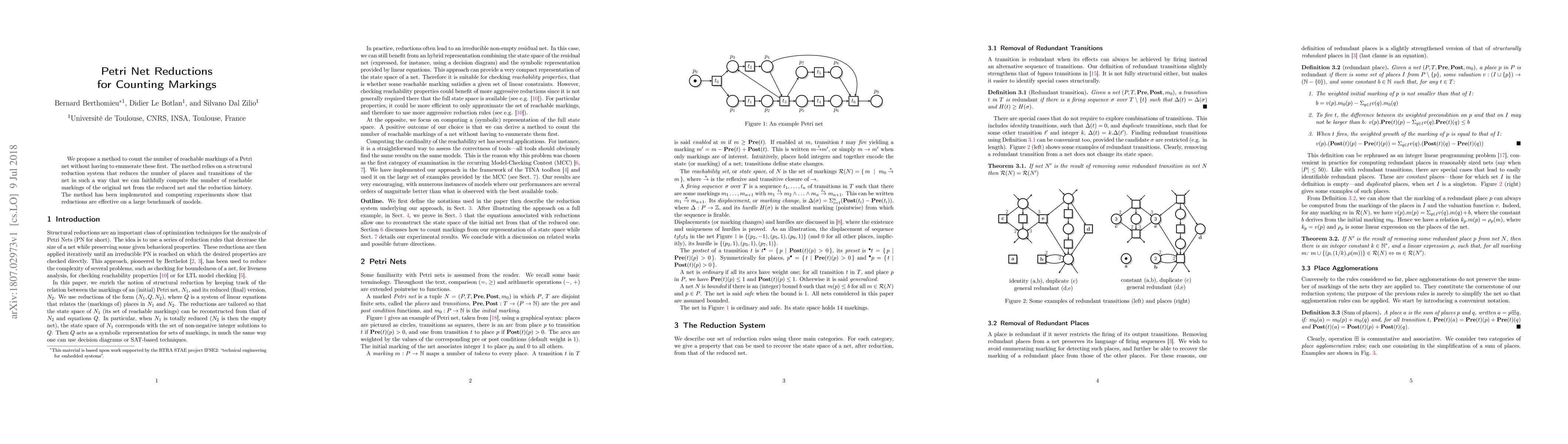 Researchers propose a method to count reachable markings of Petri nets without enumeration, using a structural reduction system that reduces the net's places and transitions while maintaining accuracy.