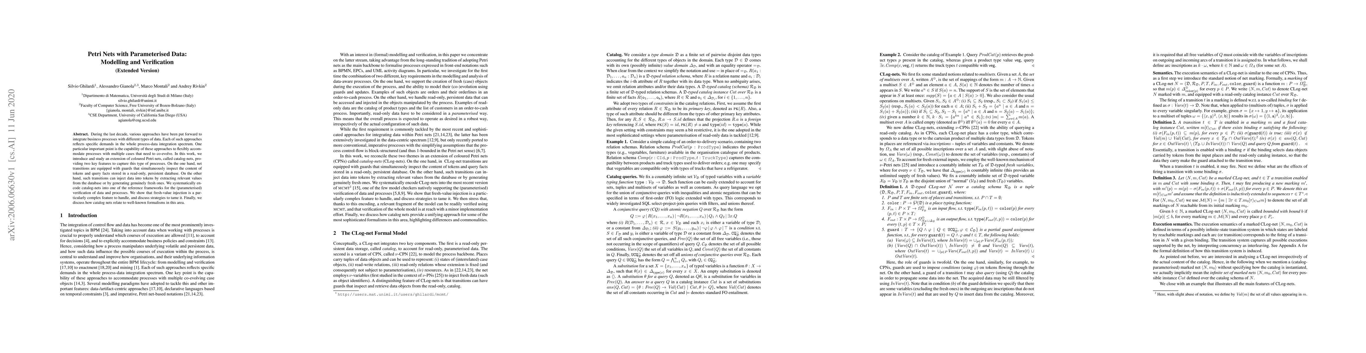 This paper extends coloured Petri nets to catalog-nets, enabling flexible modelling of business processes with multiple evolving cases. It introduces guards for transitions to inspect and inject data from a persistent database, and discusses verification strategies for handling complex fresh-value injection.