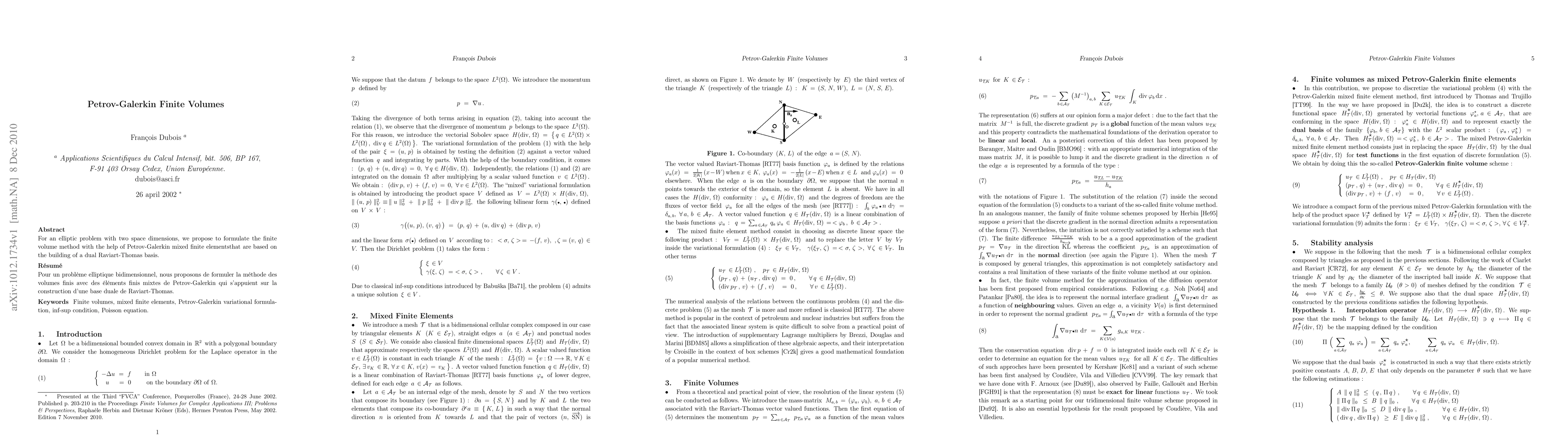 Summary: This paper proposes a Petrov-Galerkin finite volume method for solving two-dimensional elliptic problems, utilizing mixed finite elements constructed from a dual Raviart-Thomas basis to enhance accuracy and stability.