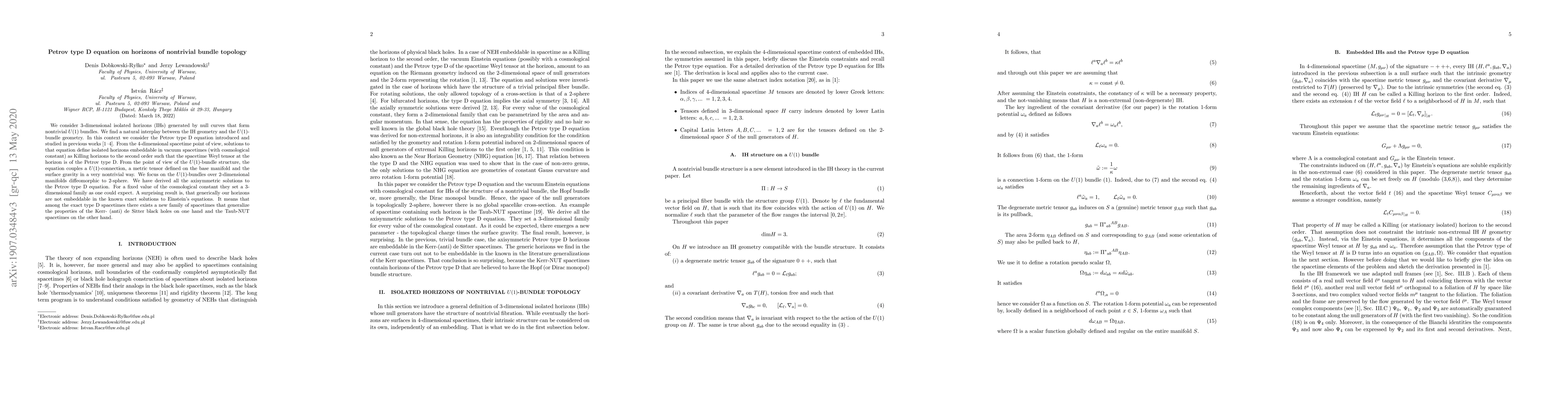 This paper explores the Petrov type D equation on horizons of $3$-dimensional isolated horizons generated by null curves forming nontrivial $U(1)$ bundles. It reveals a complex interplay between the horizon geometry and the $U(1)$-bundle structure, deriving axisymmetric solutions that define new families of spacetimes not embeddable in known exact solutions, thus generalizing properties of Kerr-(anti)de Sitter black holes and Taub-NUT spacetimes.