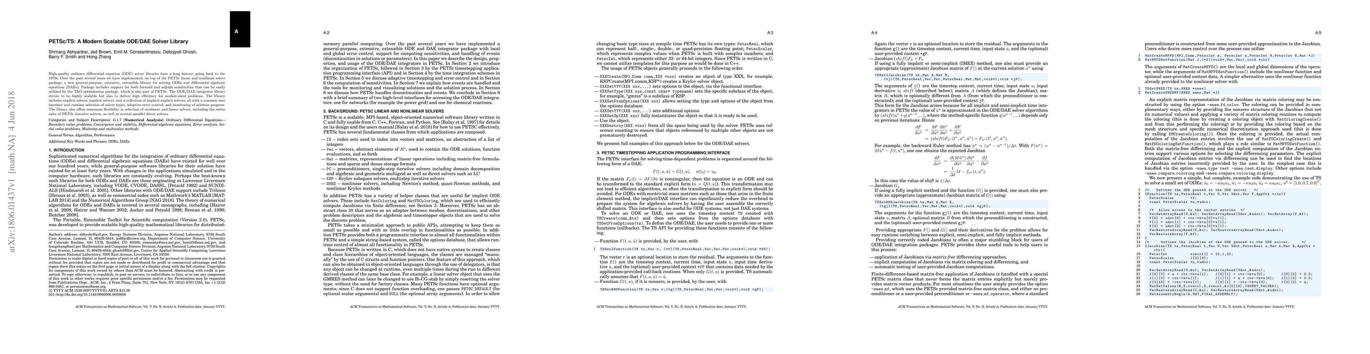 High-quality ordinary differential equation (ODE) solver libraries have a long history, going back to the 1970s. Over the past several years we have implemented, on top of the PETSc linear and nonlinear solver package, a new general-purpose, extensive, extensible library for solving ODEs and differential algebraic equations (DAEs). Package includes support for both forward and adjoint sensitivities that can be easily utilized by the TAO optimization package, which is also part of PETSc. The ODE/DAE integrator library strives to be highly scalable but also to deliver high efficiency for modest-sized problems. The library includes explicit solvers, implicit solvers, and a collection of implicit-explicit solvers, all with a common user interface and runtime selection of solver types, adaptive error control, and monitoring of solution progress. The library also offers enormous flexibility in selection of nonlinear and linear solvers, including the entire suite of PETSc iterative solvers, as well as several parallel direct solvers.