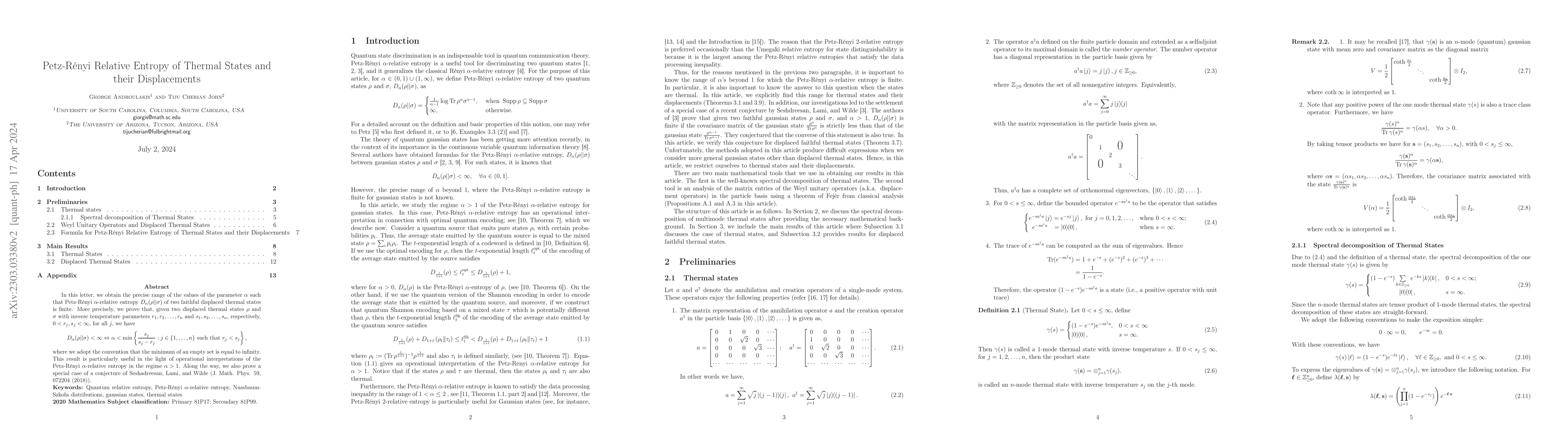 $D_{\alpha}(\rho||\sigma)$ of two displaced thermal states is finite. More